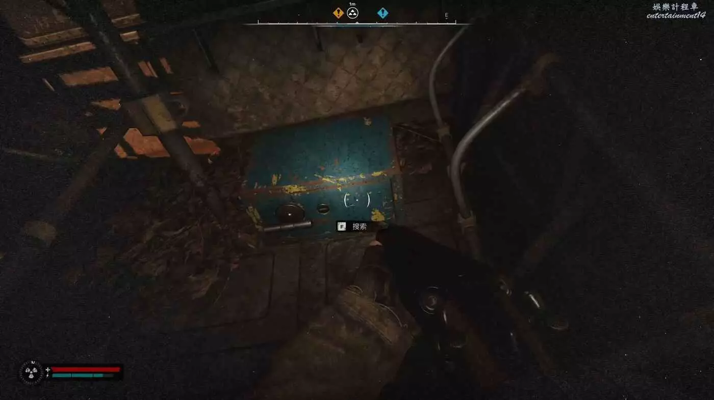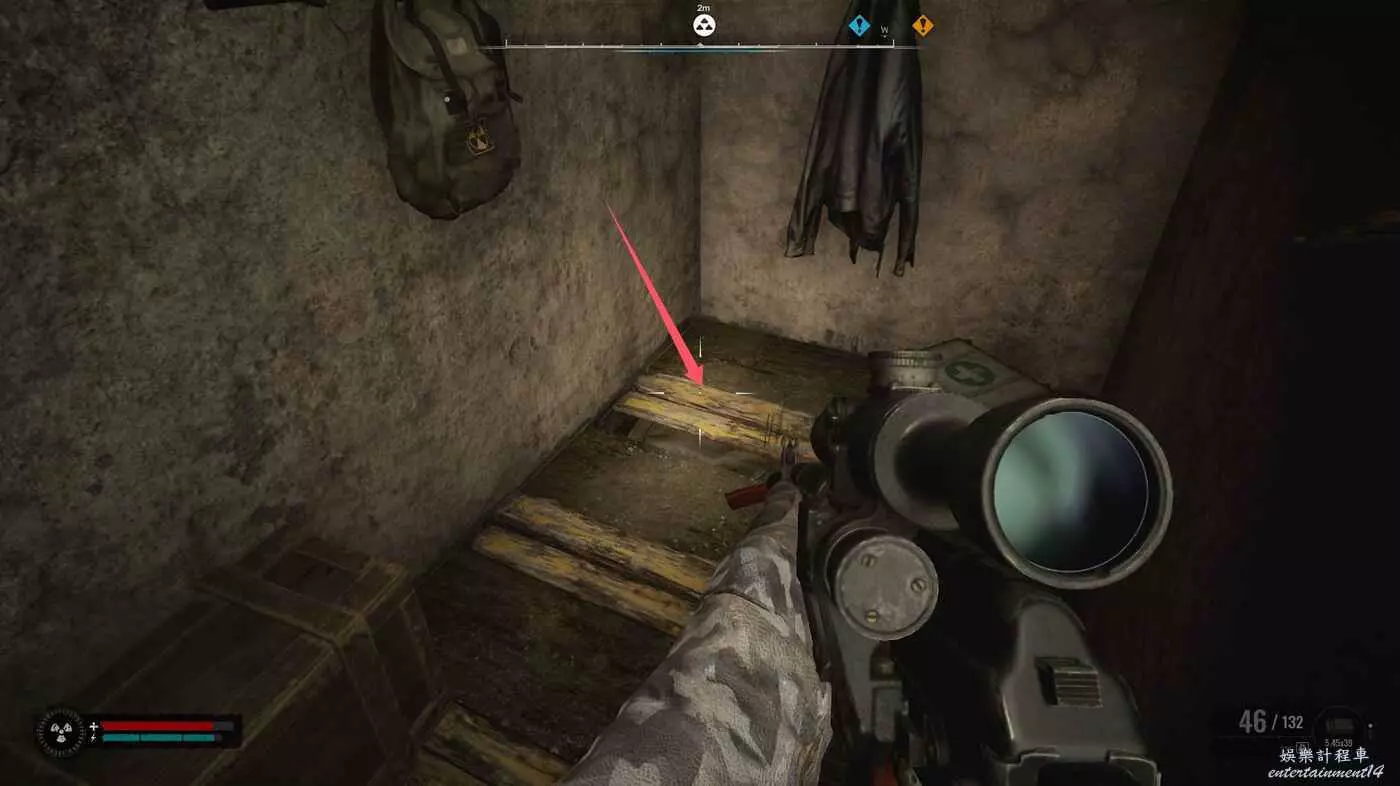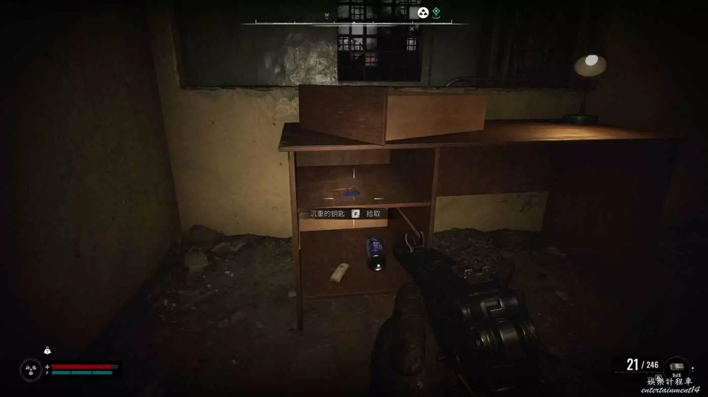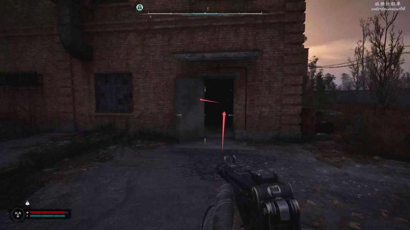 進入建築物後,往裡走,找到下樓的地方,裡面有個可以吸槍的小怪。
