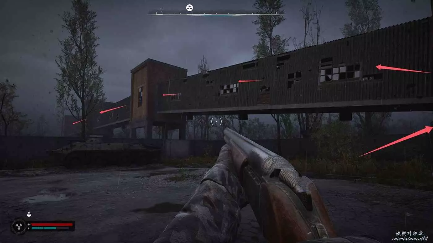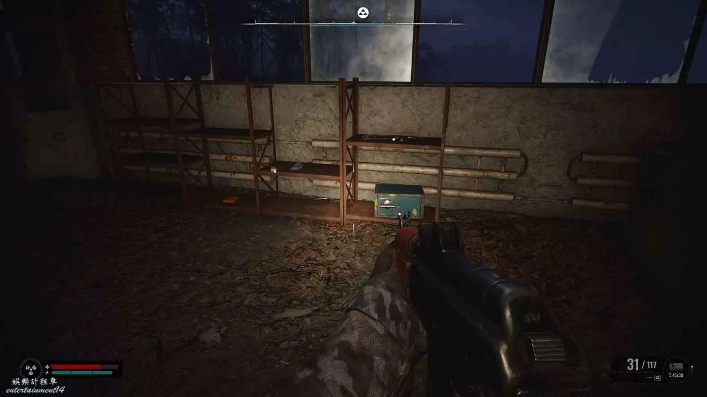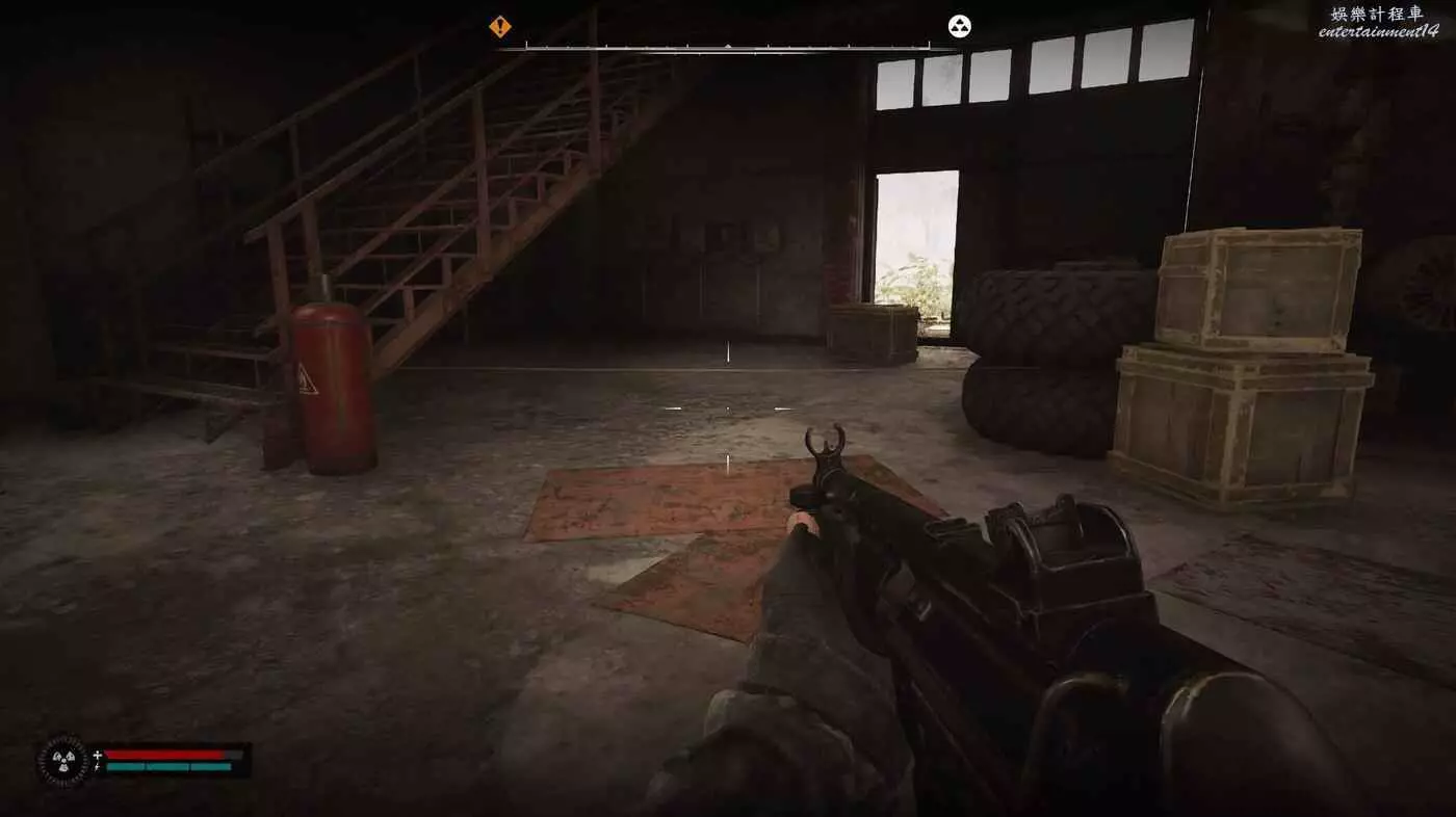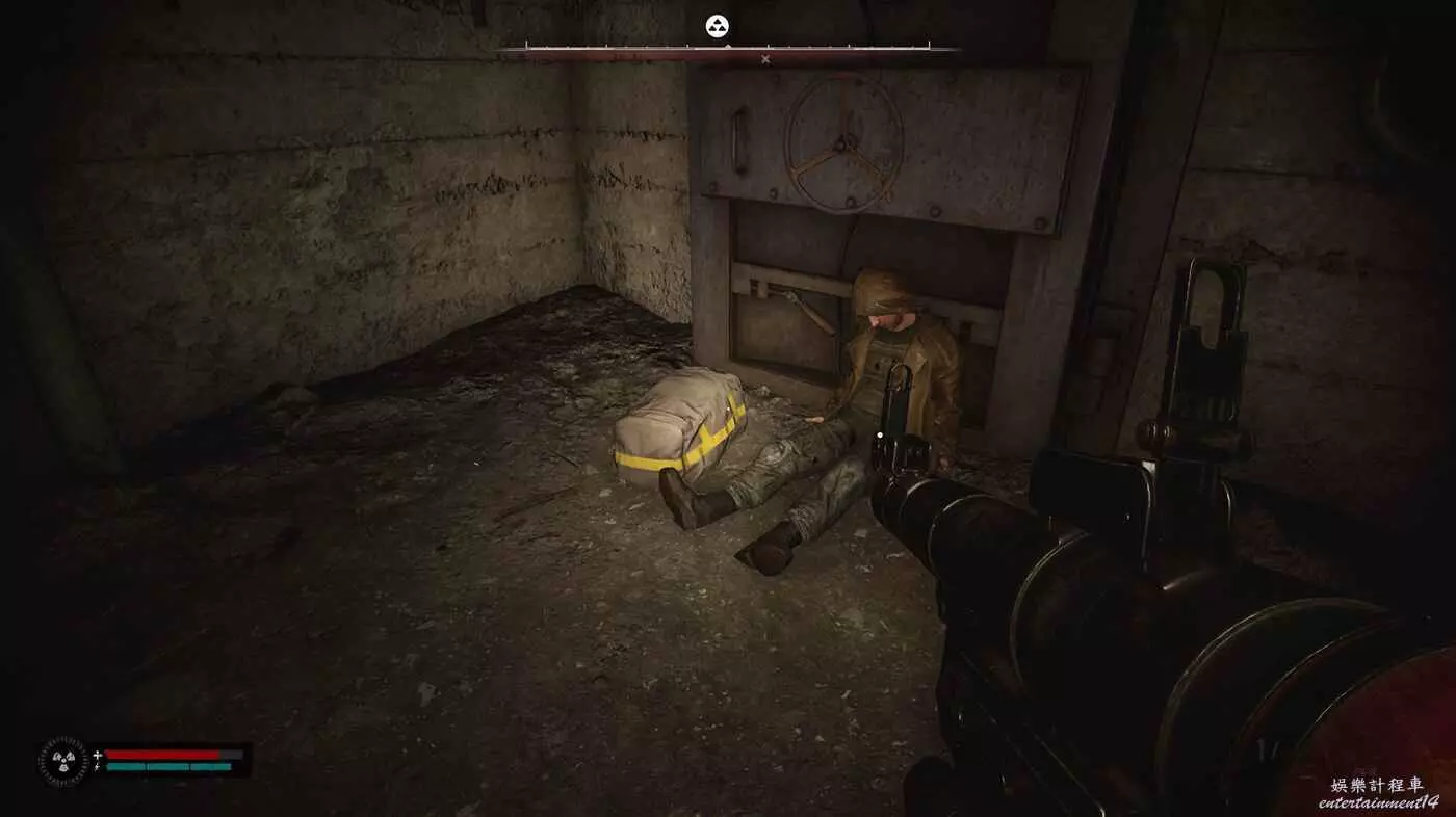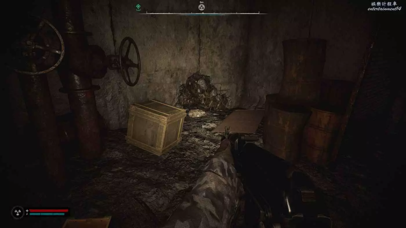 進入建築物後,往裡走,找到下樓的地方,裡面有個可以吸槍的小怪。