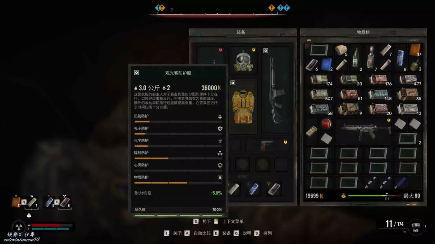 (旁邊箱子裡有觀光客的防護服+5%耐力恢復)