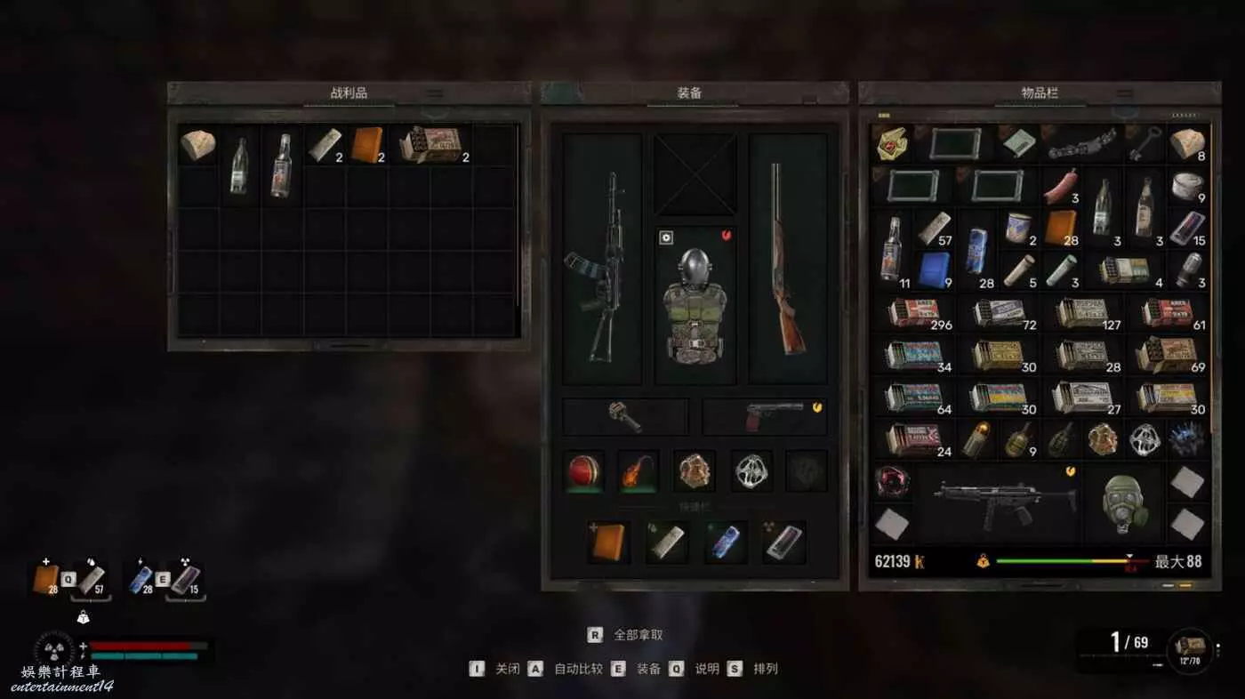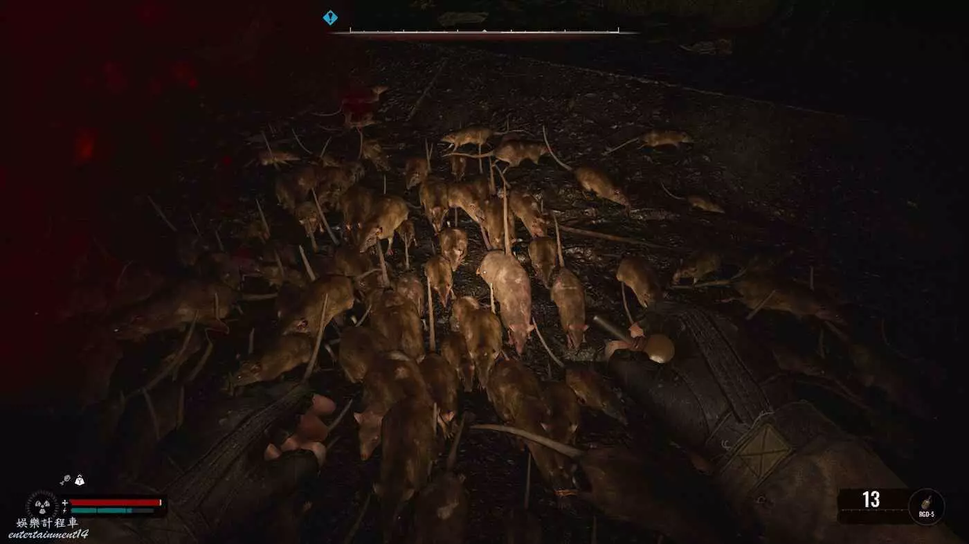 不要直接從那跳下去……來到旁邊這個位置,這裡有梯子可以下去…下去後來到屍體那會刷老鼠群,建議帶上手雷,重新爬上梯子那,然後扔雷。