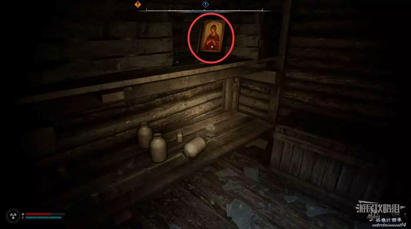 找到地窖入口,爬梯子下去拿到聖像。