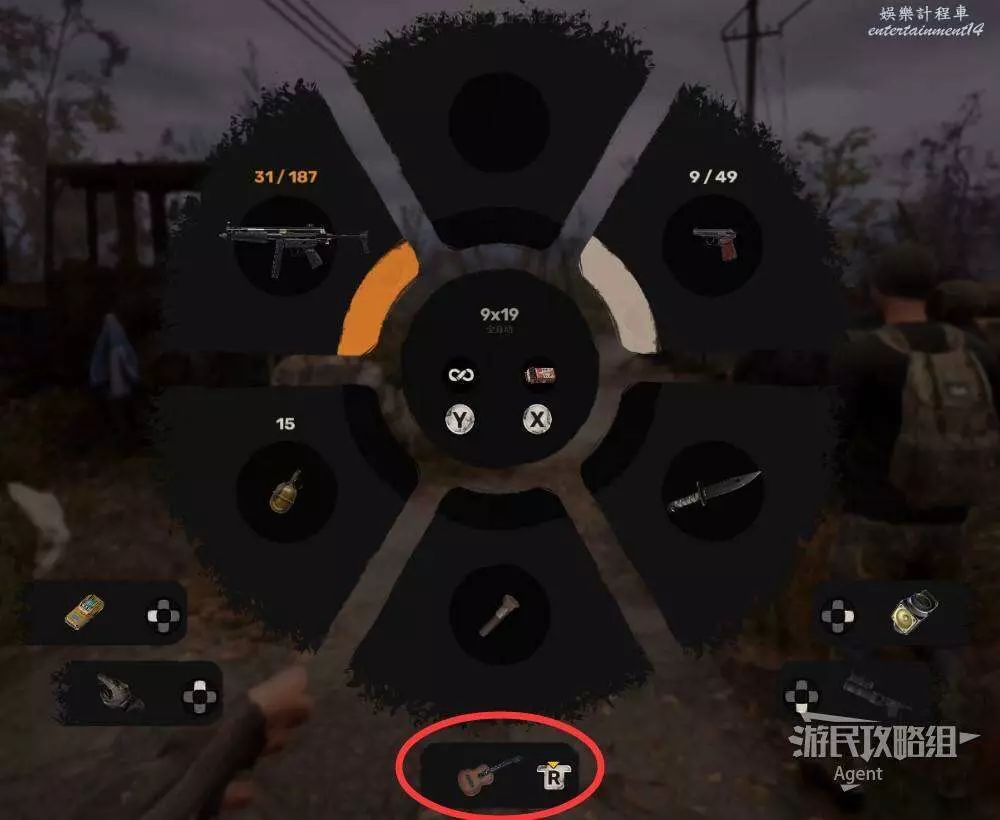 打開環形功能表,可以切換武器、武器所使用的彈藥、武器的射擊模式。
