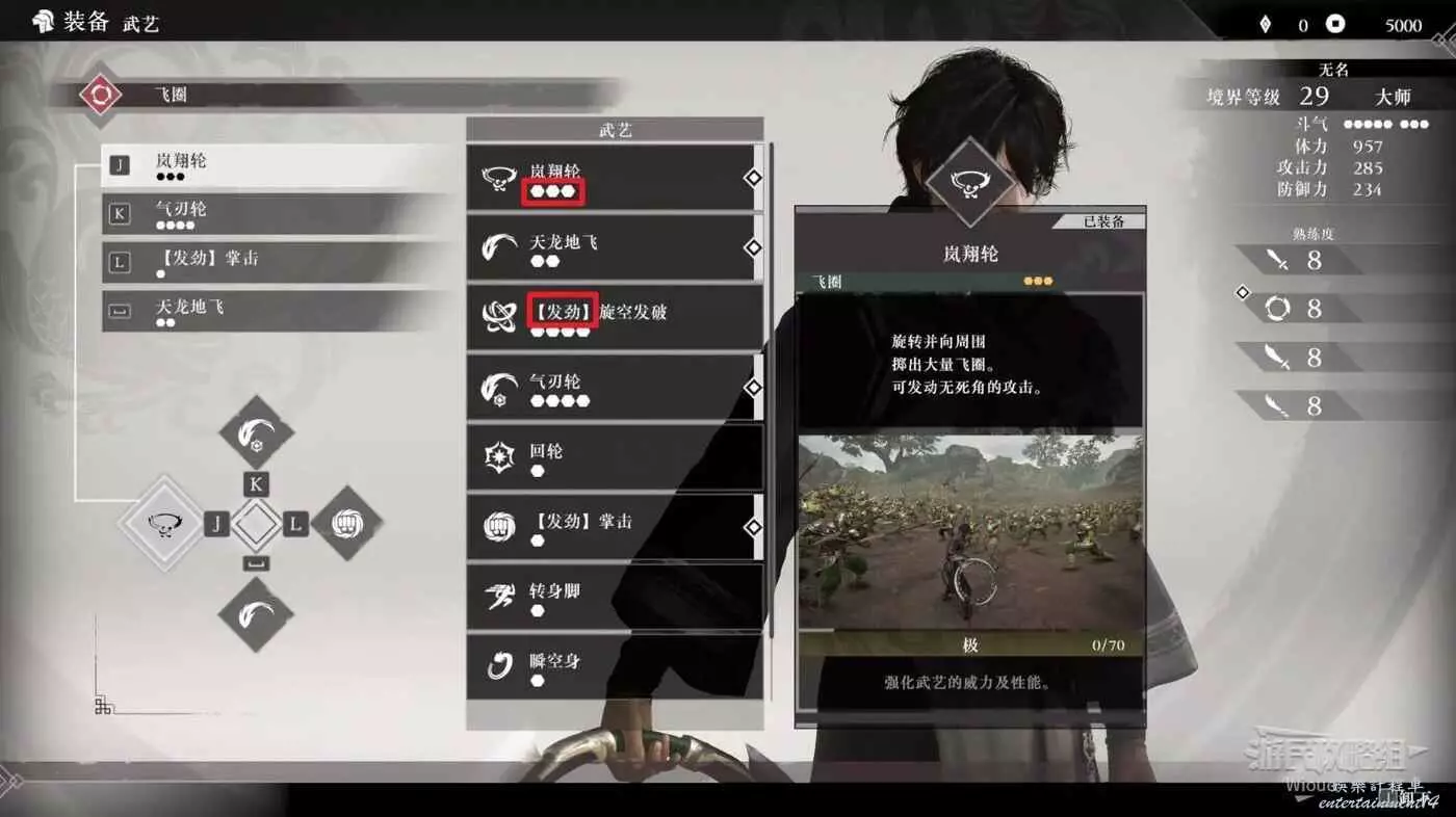 4、武藝選單,按下武藝按鍵可以放大這個選單,通過相應按鍵釋放對應的武藝招式。