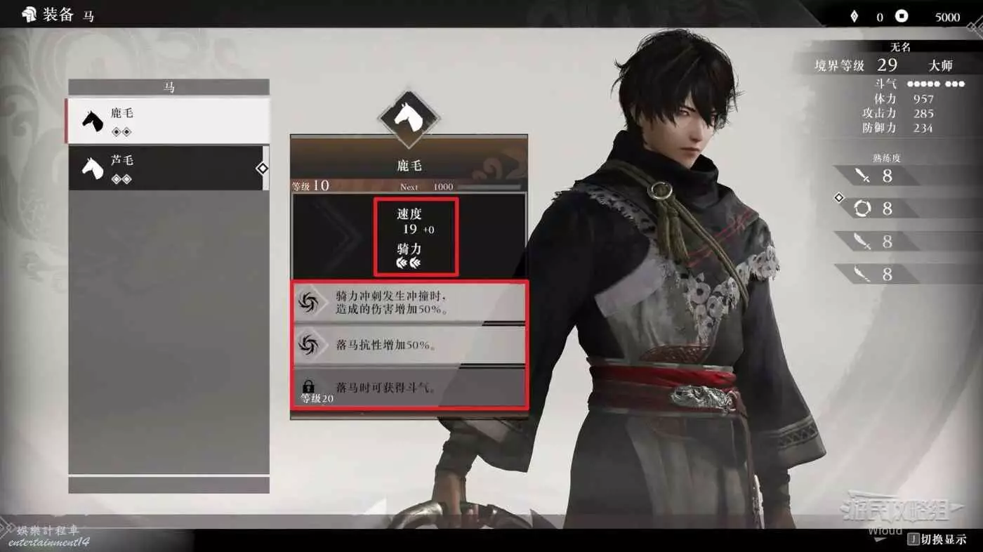 除了主要的戰鬥裝備,玩家還能選擇不同屬性的馬匹以適應不同的戰場環境。