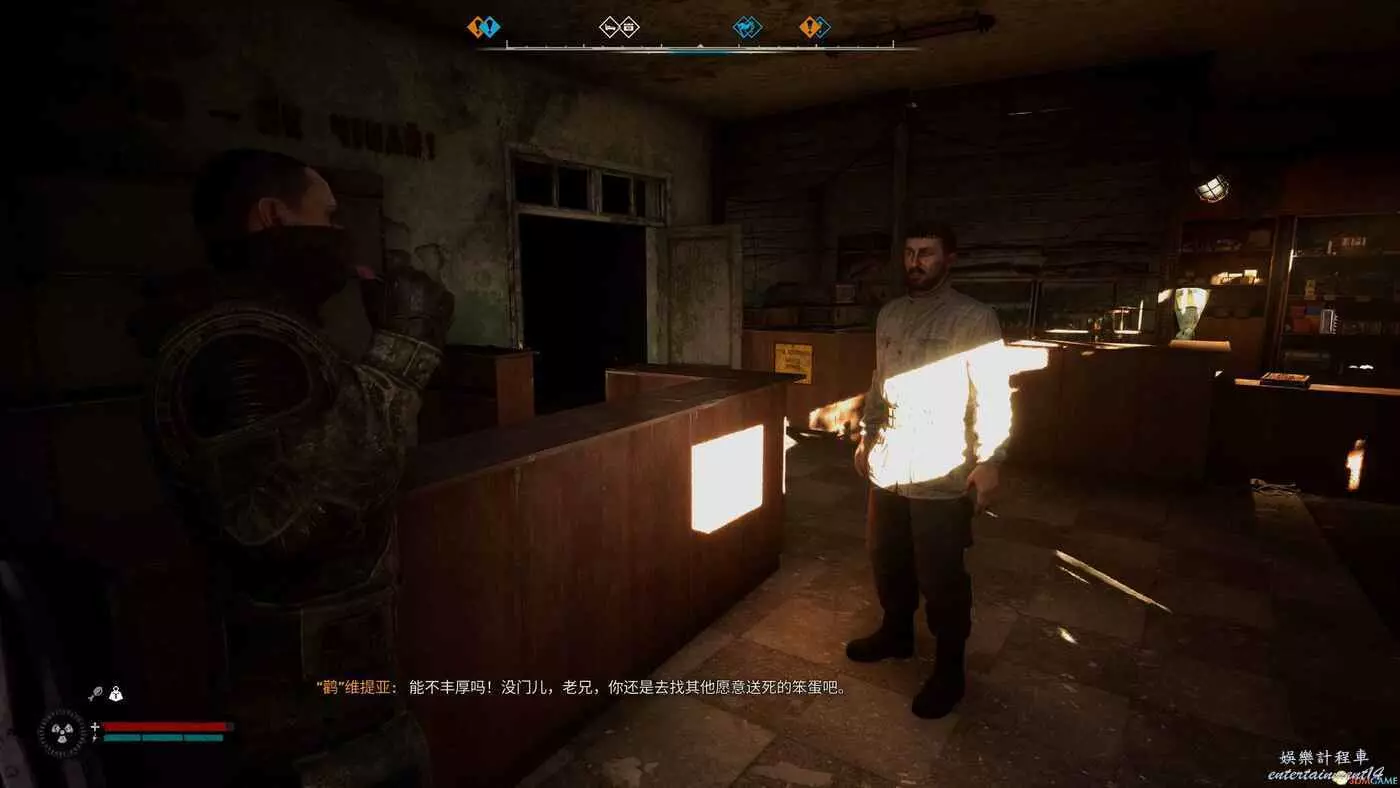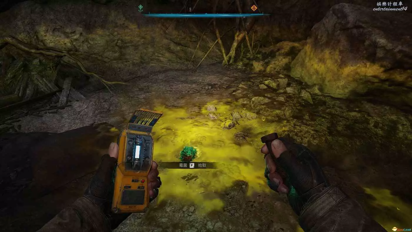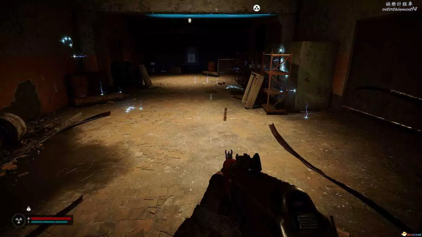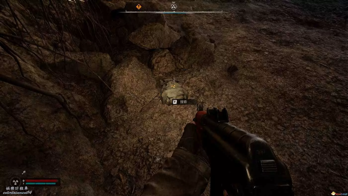 左下是角色的輻射、生命和體力情況,衝刺、跳躍等動作都會消耗體力,體力會自動恢復,也可以通過道具恢復。