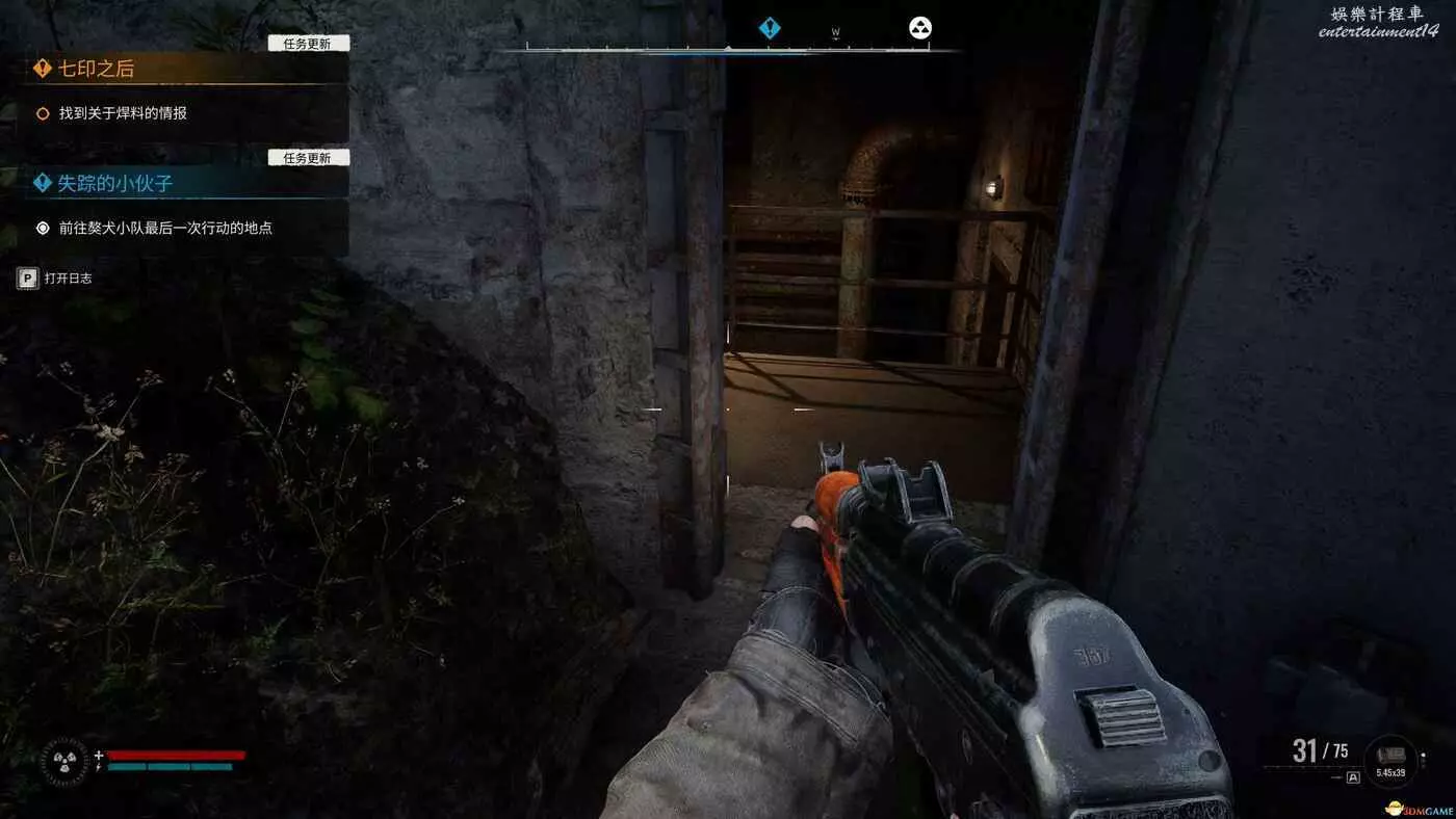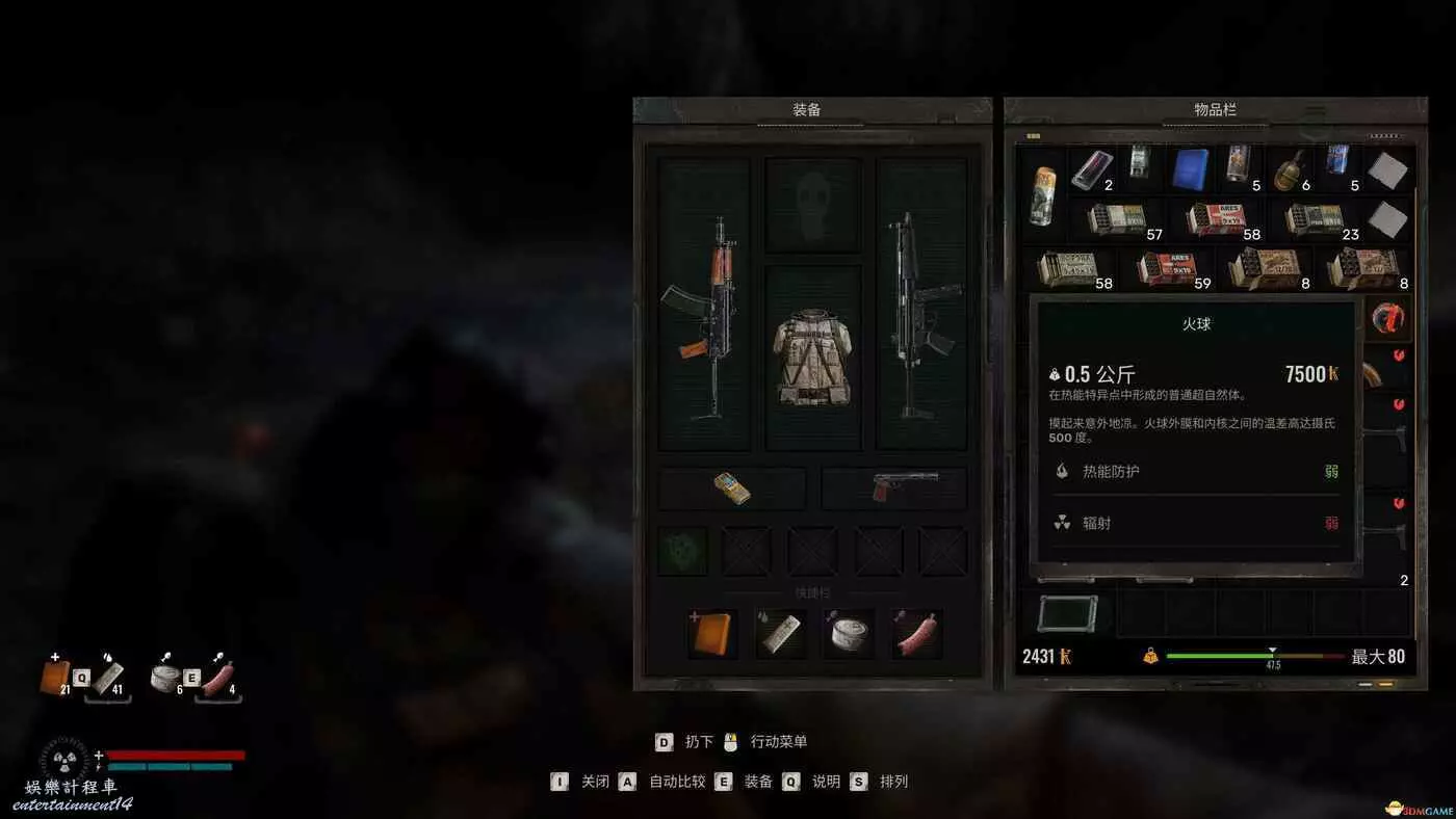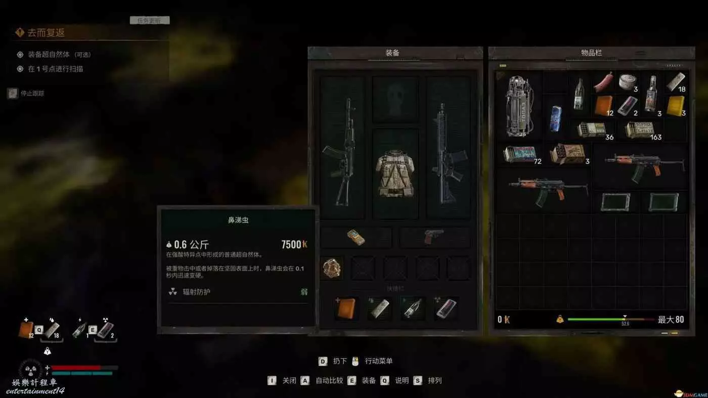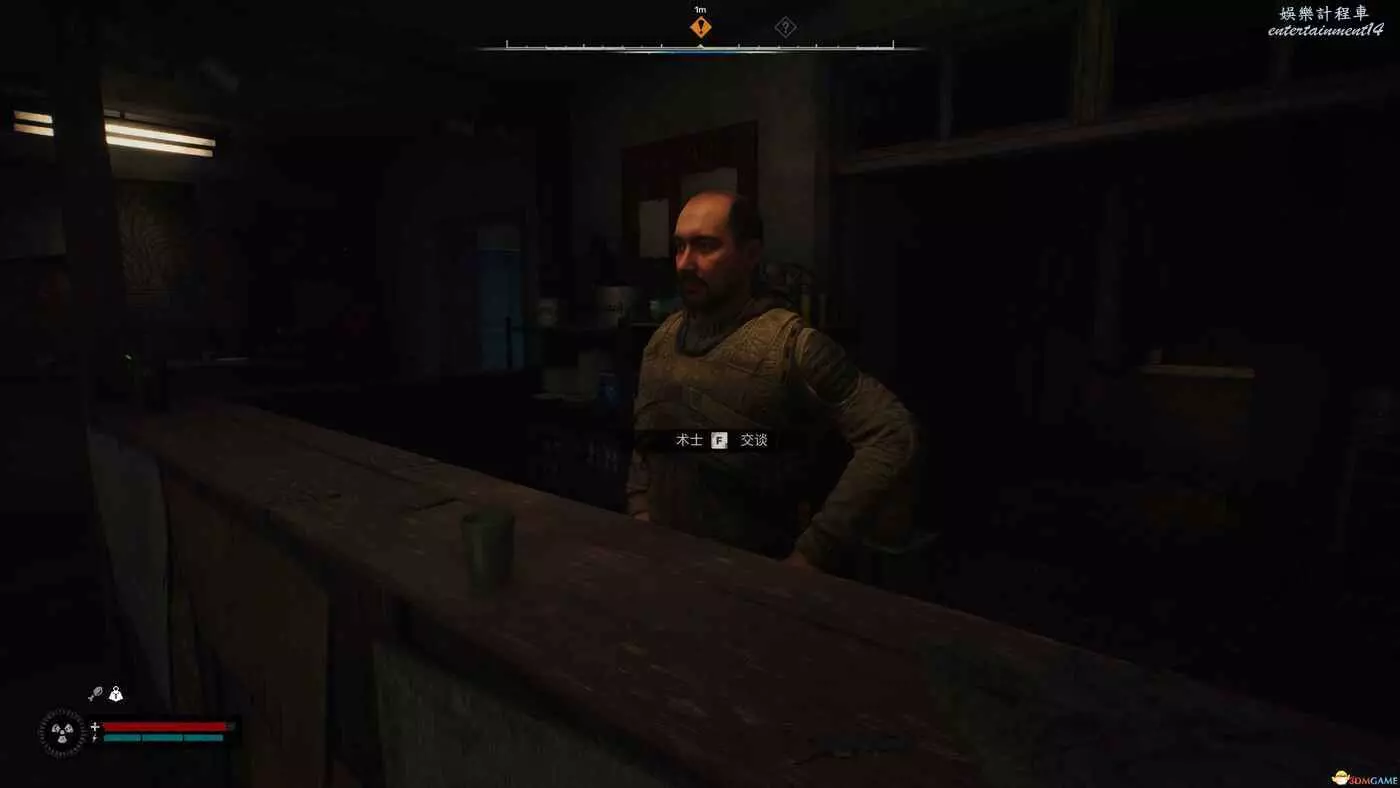 左下是角色的輻射、生命和體力情況,衝刺、跳躍等動作都會消耗體力,體力會自動恢復,也可以通過道具恢復。