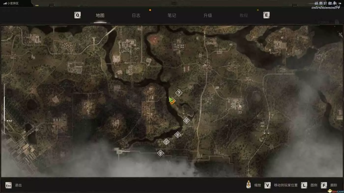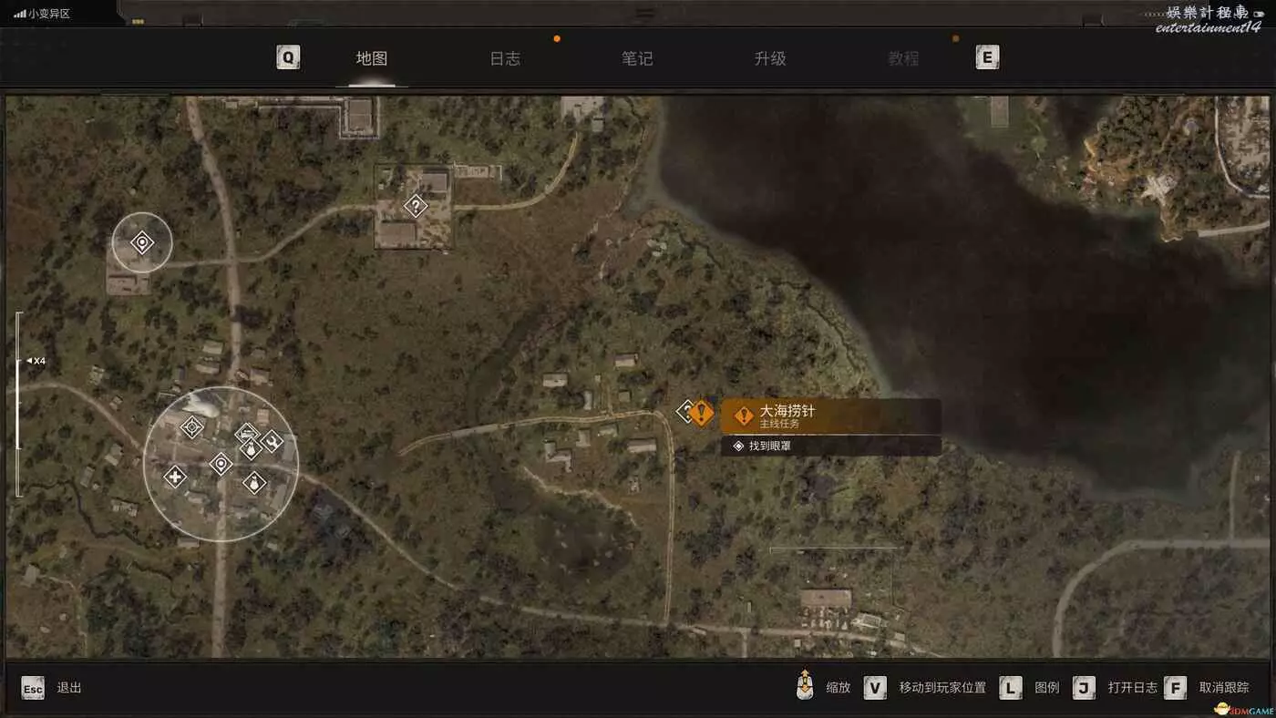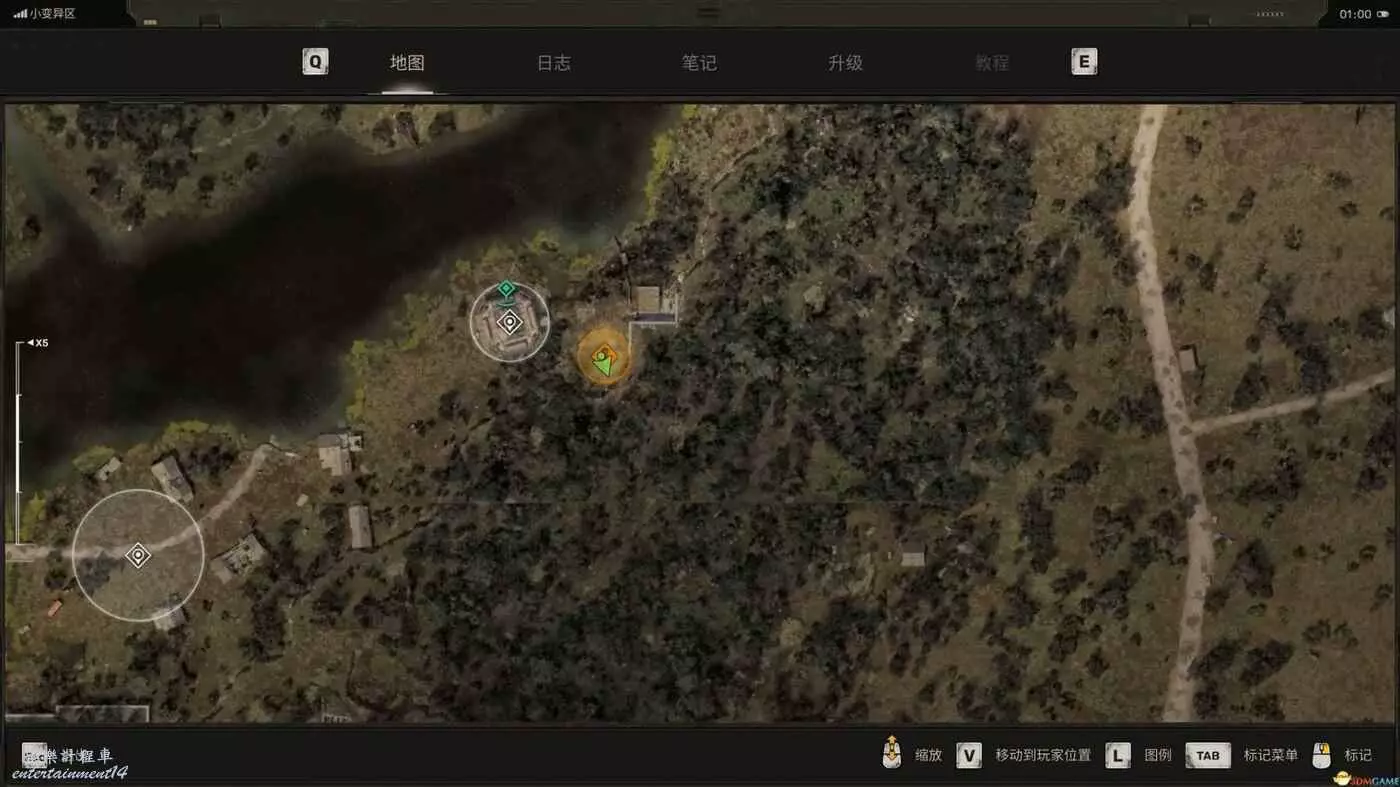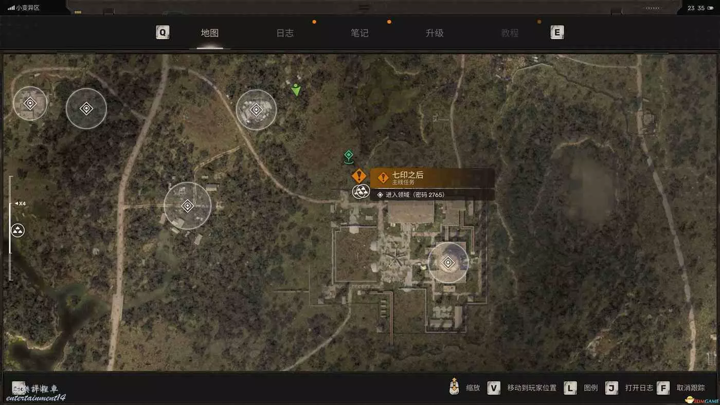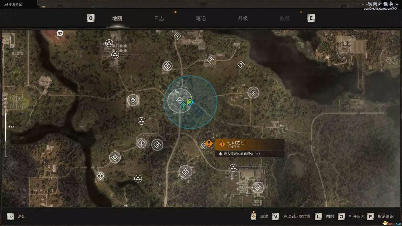 頂部是方位、標記點提示,可以按M打開地圖進行標記,標記會顯示在頂部。
