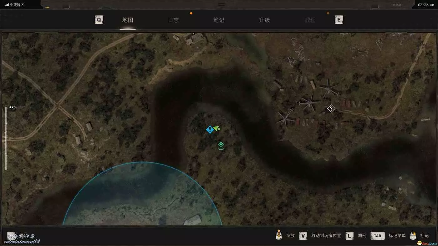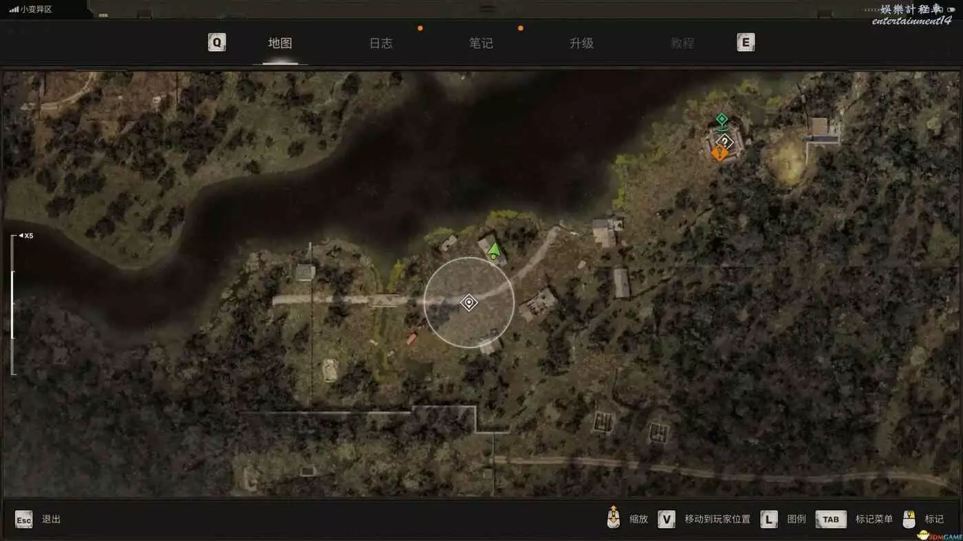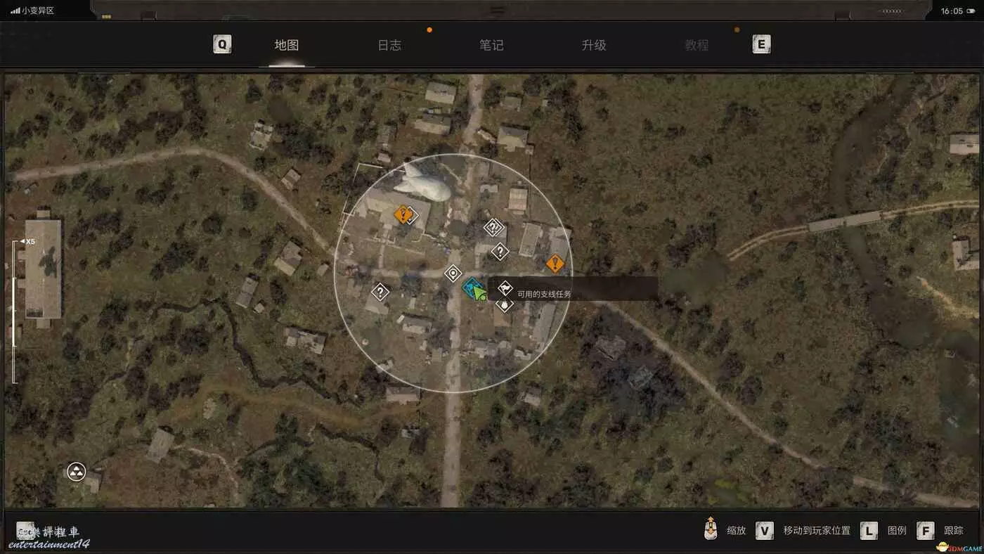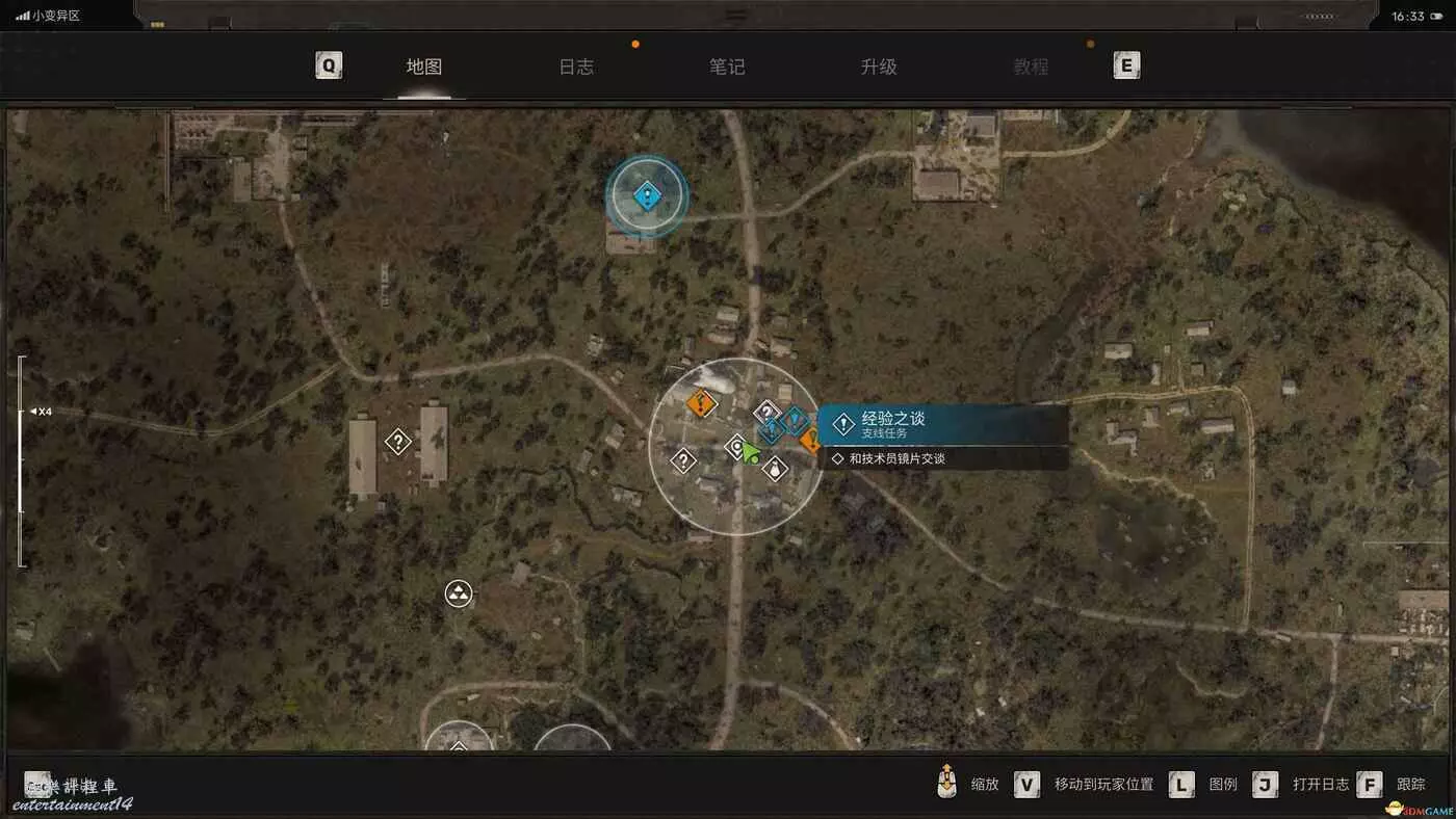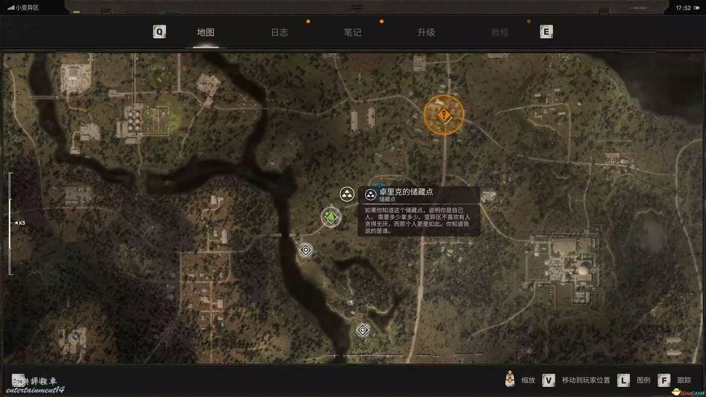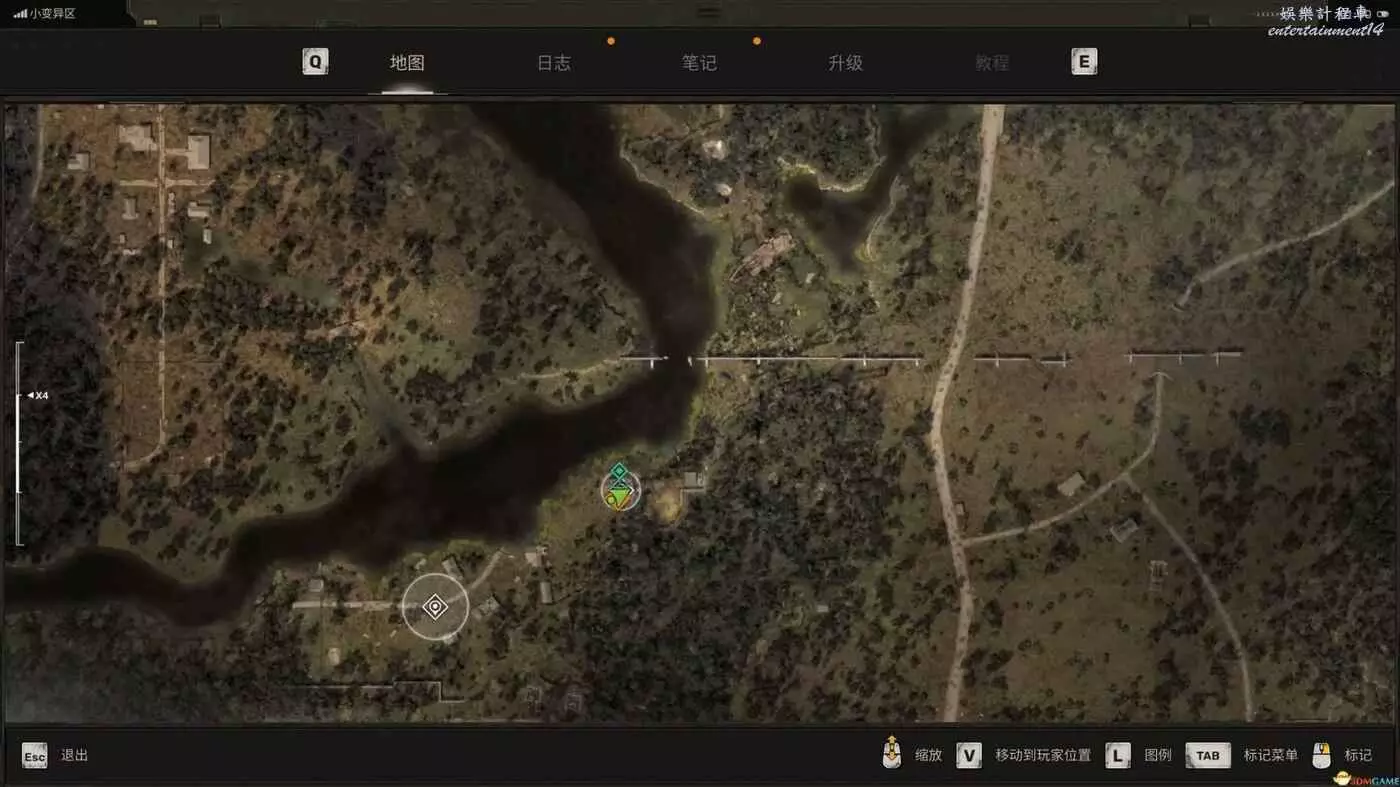 頂部是方位、標記點提示,可以按M打開地圖進行標記,標記會顯示在頂部。