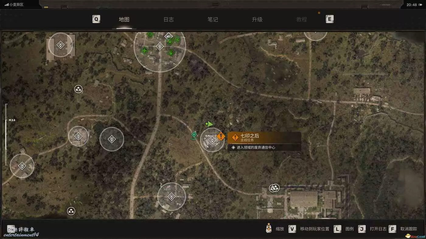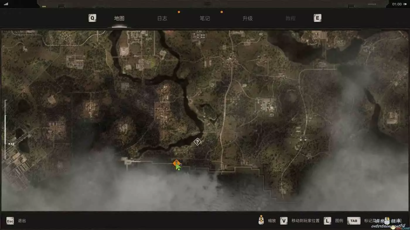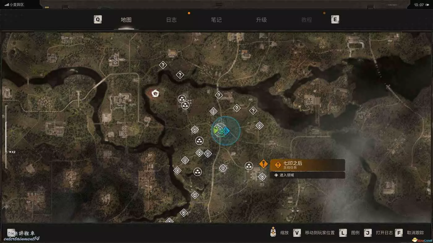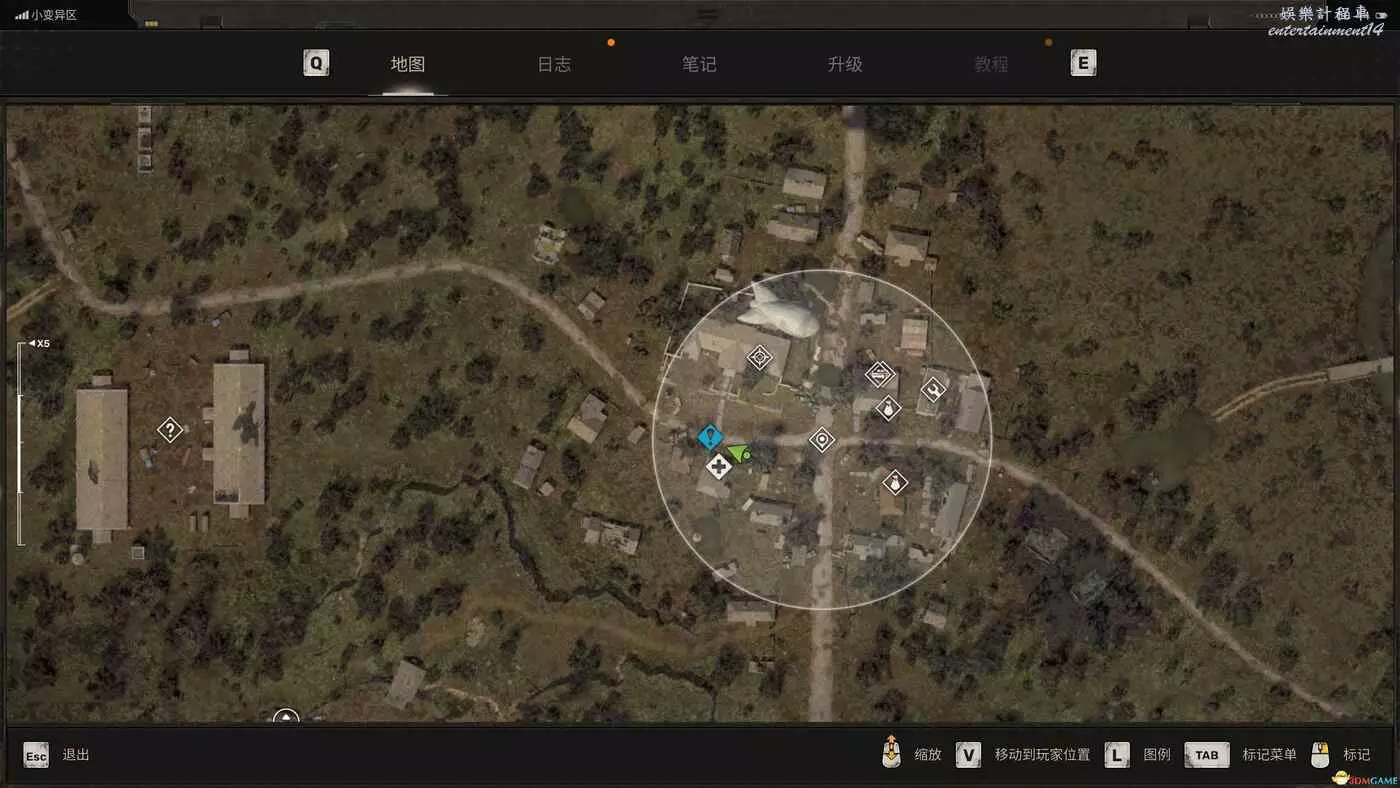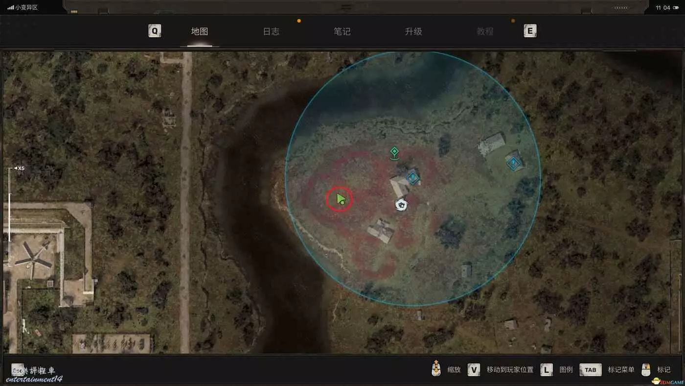 頂部是方位、標記點提示,可以按M打開地圖進行標記,標記會顯示在頂部。