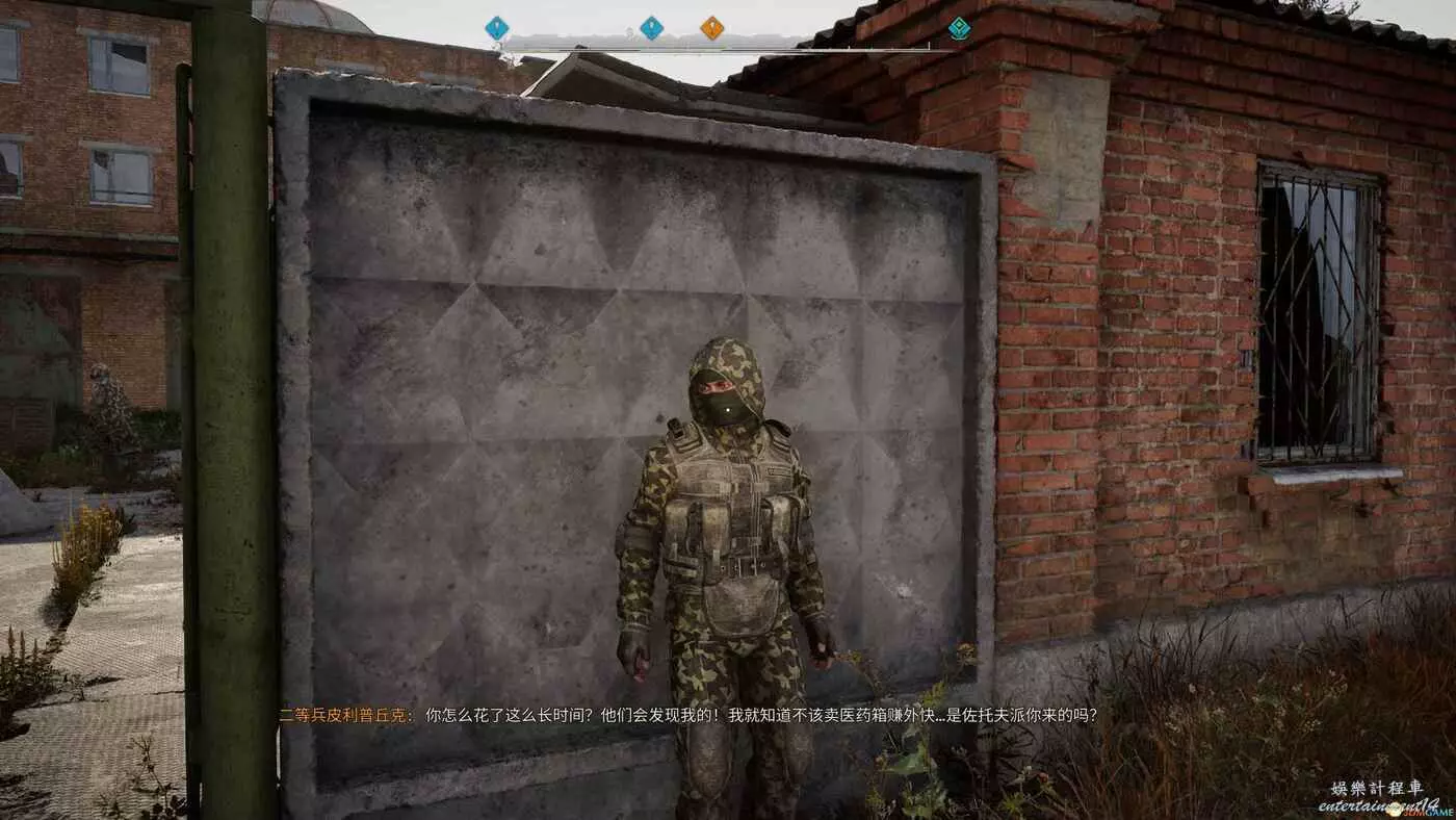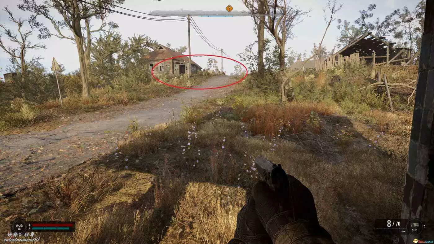 沿路向潛行者營地前進,中途會在路邊看到三個掠奪者正在圍攻一棟房子。