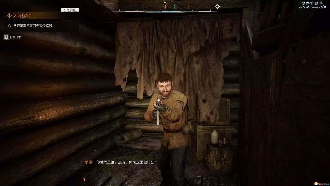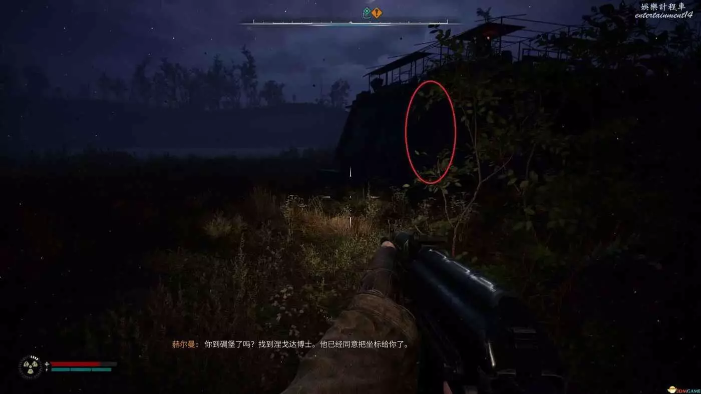 在營地找老爹與裡赫特打探情況時,裡赫特會讓你啟動營地(紮利斯亞)高塔上的天線,這樣更好來定位眼罩。