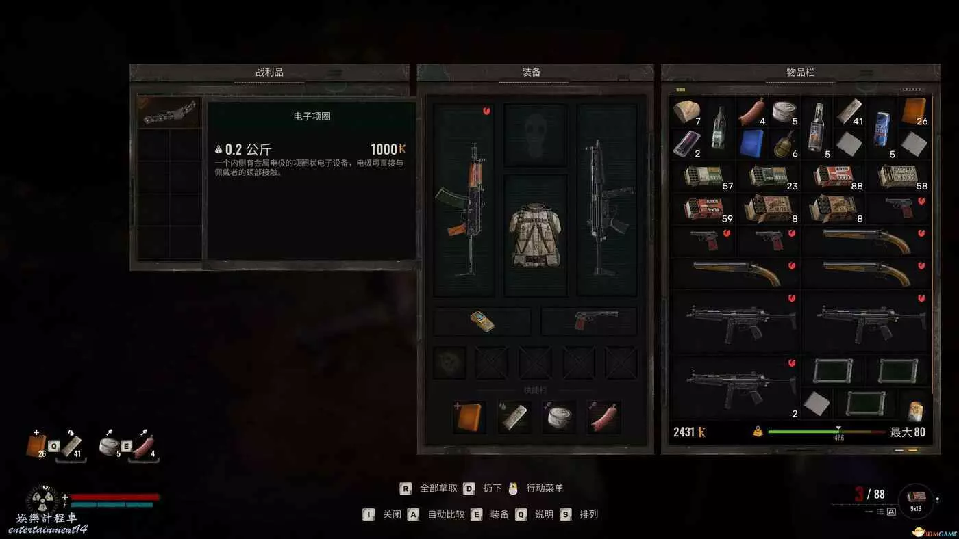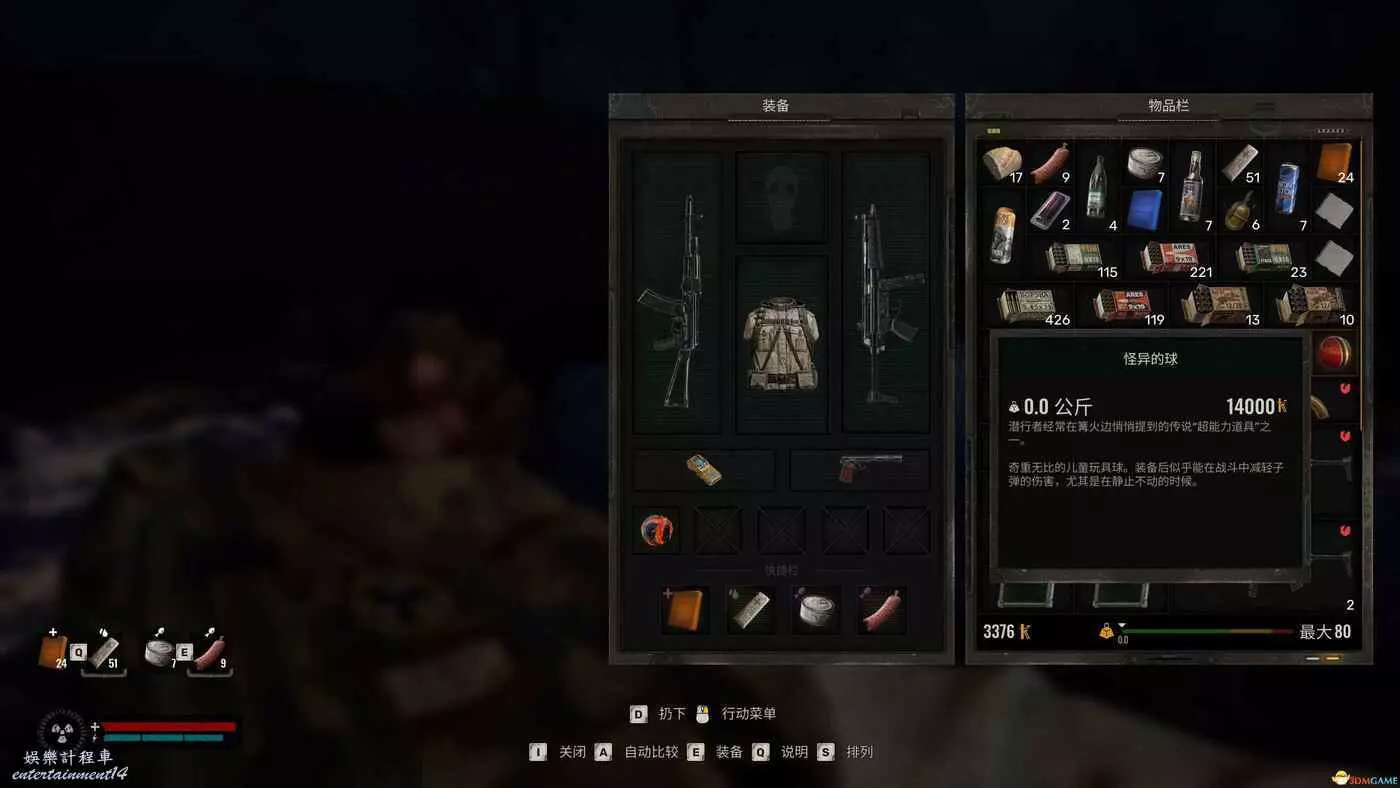 注意按I可以打開背包,Q/E兩鍵快速欄上系統會自動放道具,玩家也可以自由調整。