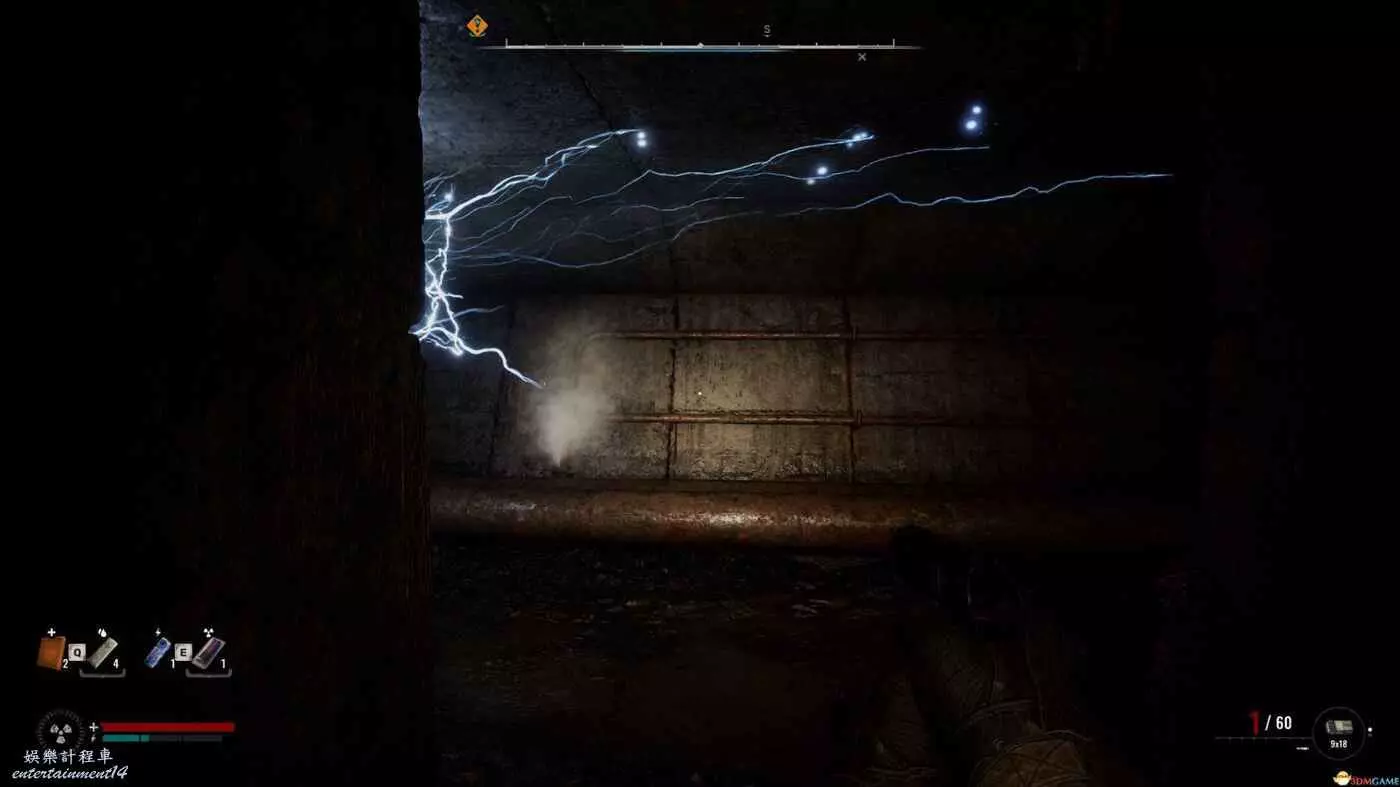 跟著閃電進去後,左手邊有凹陷處可以躲避,閃電不會進來。
