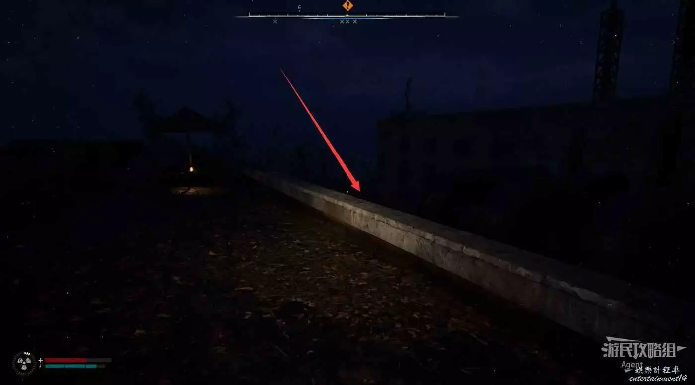 營地和廢物處理站之間,隔著一片水域,沿下圖路線有路可以抄近道。