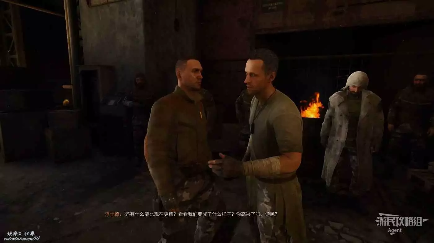 和飛撲對話後,回營地找遊民,劇情後他會送你把強力的狙擊槍。