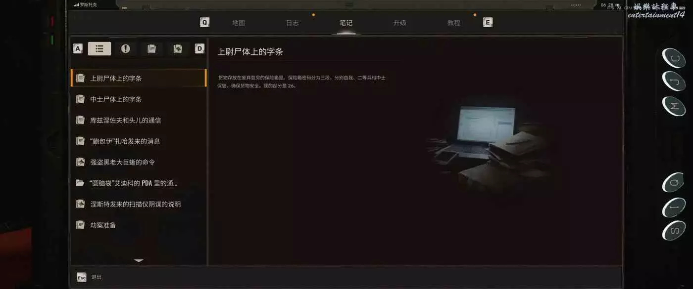 浩劫殺陣 2 車諾比之心 短劍衝鋒槍獲取教學 23 11 月 2024-11-23 廣告 作者:第十二顆星 來源:潛行者吧 下士的字條呀:建築有兩個門能進,北邊通到廚房,隔壁有個小軍火庫,下士屍體就靠牆躺著。 總共三具屍體,上尉和中士一起在那個倉庫裡頭,下士在不遠處的導彈基地裡。 武器 記者藏匿點,拿了裝備標記沒了,地圖上很好看到,綠標的地方也有一把不錯的步槍,但是小心有球形閃電和倆隻吸血鬼,建議拿了就跑。