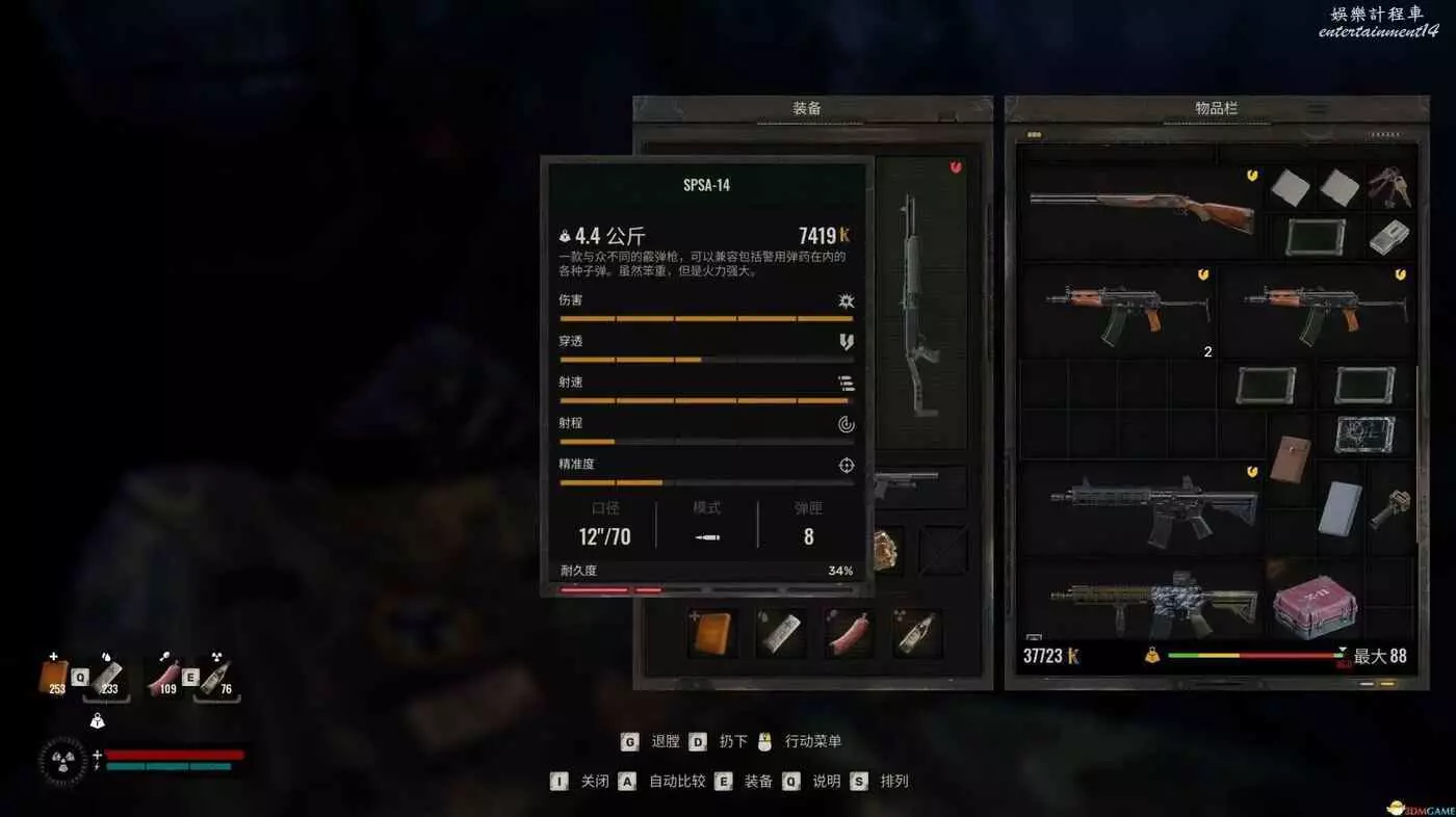 PS:拿到彈夾噴D12了,霰彈槍的屬性欄顯示傷害都是最高的,所以還得找個怪試試看,不過應該是彈夾噴更好,因為圖裡這把不能做改裝彈匣,上彈和切換彈藥比較慢,穿甲也差一些。而且D12的可改造選項很多,雖然目前沒有npc能改。(還有北約那把狙,我在初始的小變異區就拿到兩把,結果都打到沼澤了也沒人能改槍)