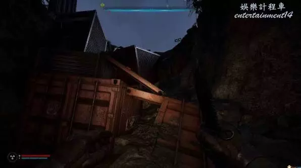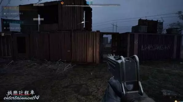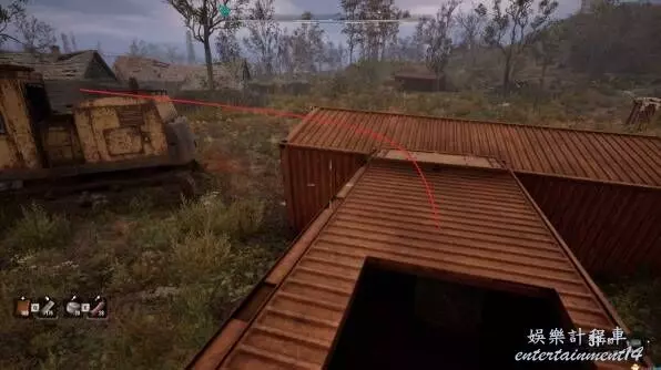 進入標記點後就是一個營房,可以一拖角落的雜物箱、汽車躲避。
