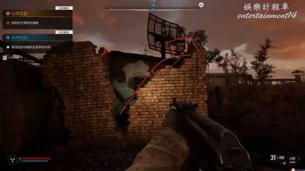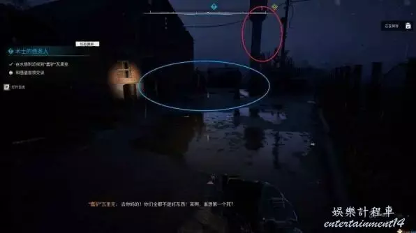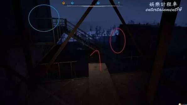 這波人基本上只有消滅掉,所以完全可以不上前互動,直接爬到對面(紅圈)的水塔上。