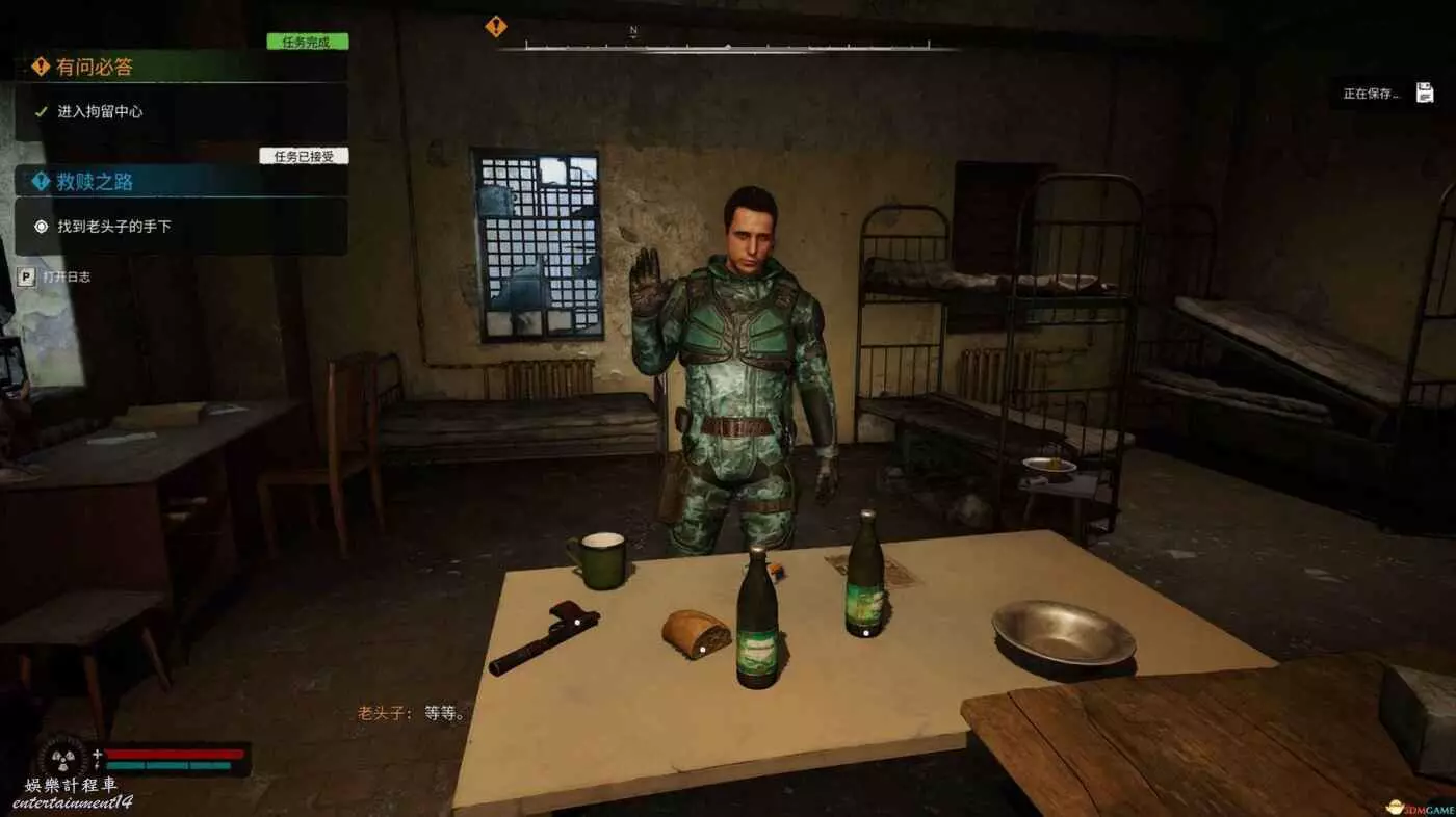 然後和窗戶口的無線電互動,調頻後發現大叔在和秘碑聯絡,他是內鬼。