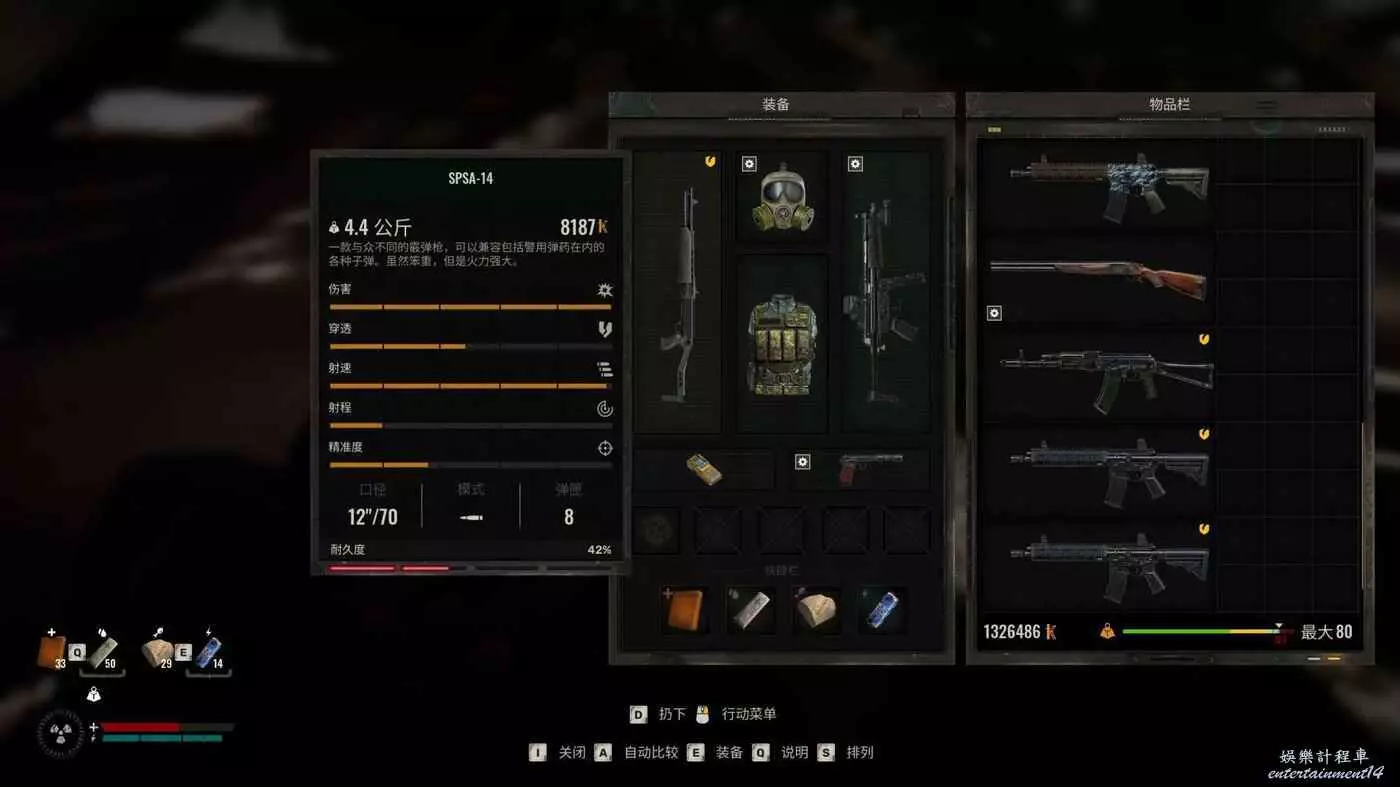 再補2個附近的地點,一個是人豬大戰的螞蝗{身上有2把完好的特種部隊AKS74U帶消音器},另外一個是8發的SPSA-14霰彈{破爛狀態}。