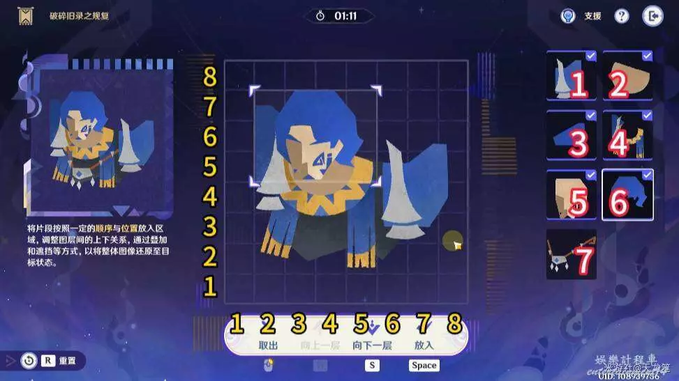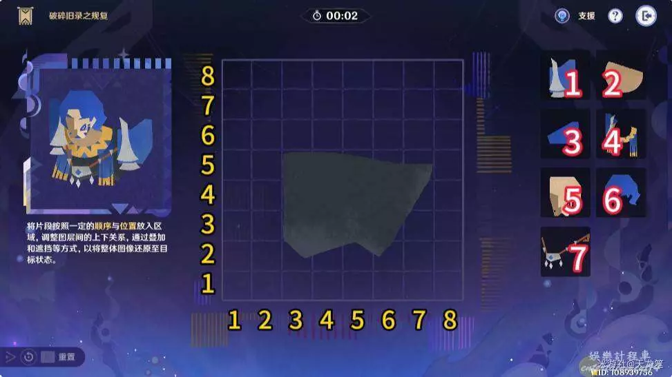 按座標放入對應拼圖即可,座標為左下角對齊「豎列,橫排」