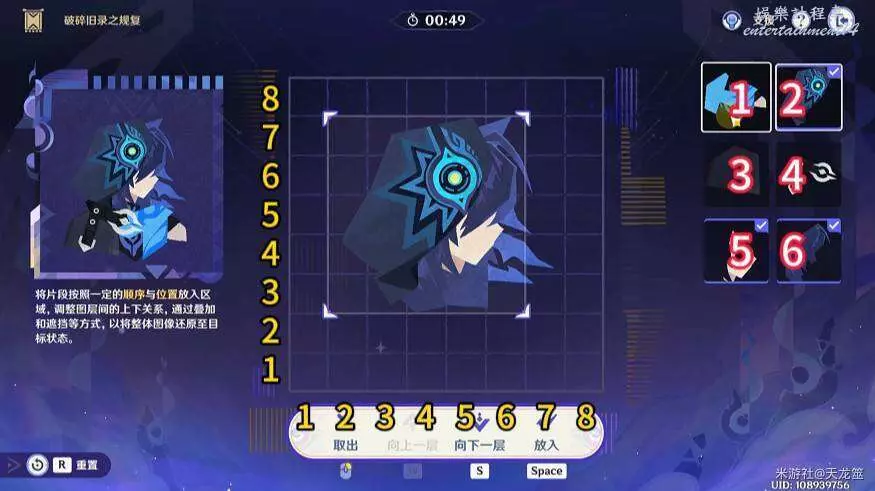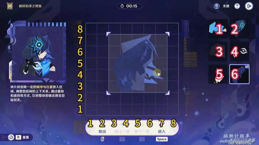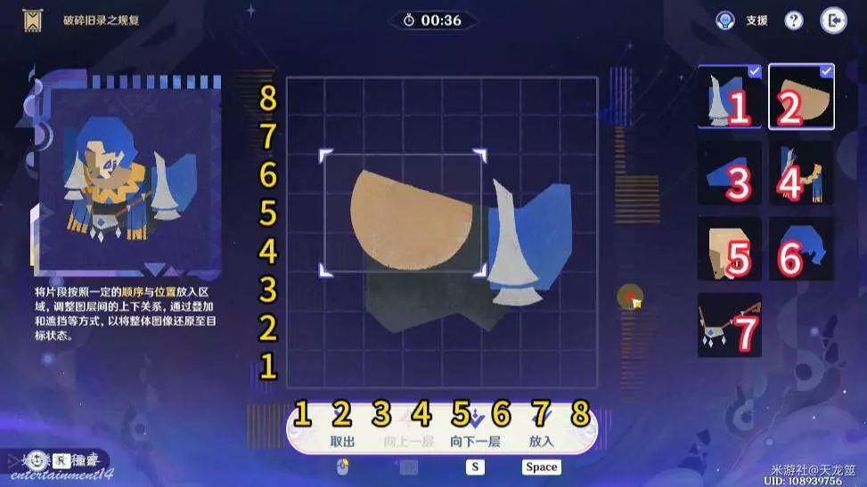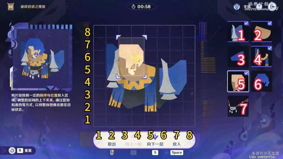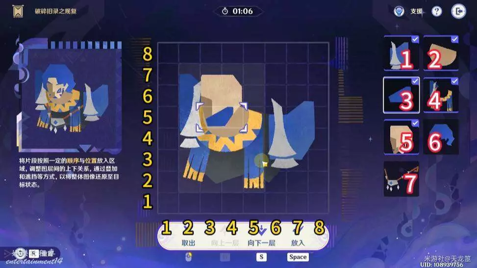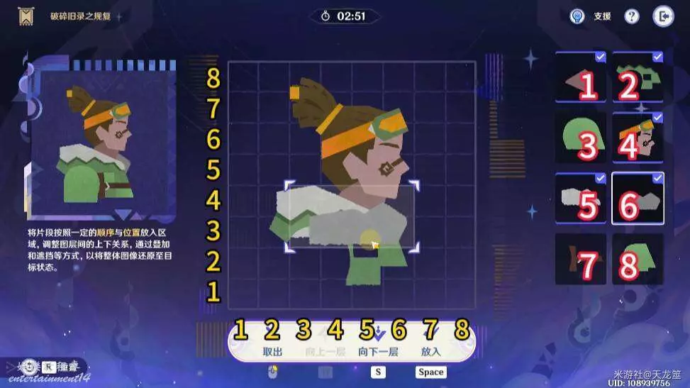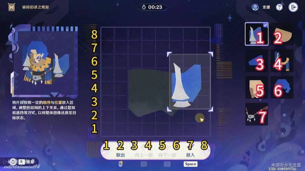 6、6號拼圖放在「2,3」的位置,下移一層