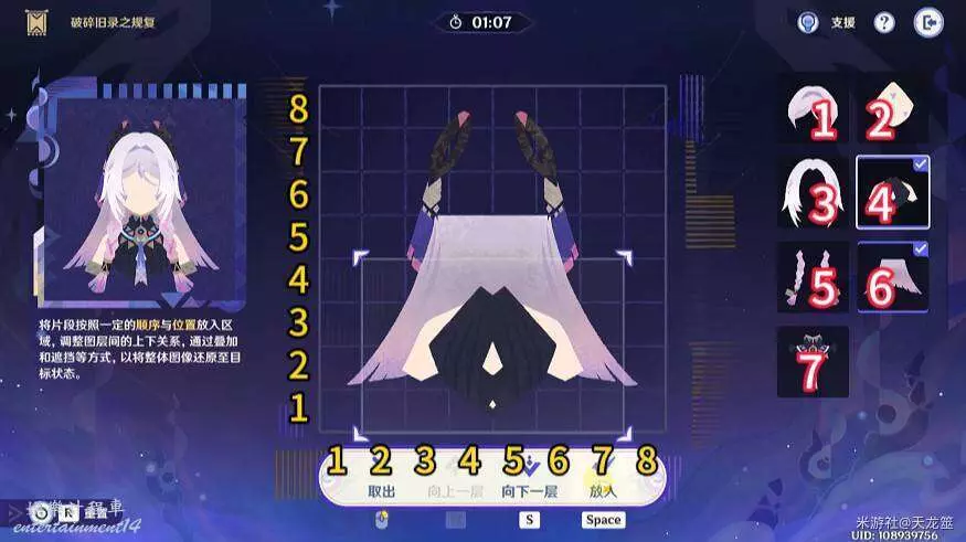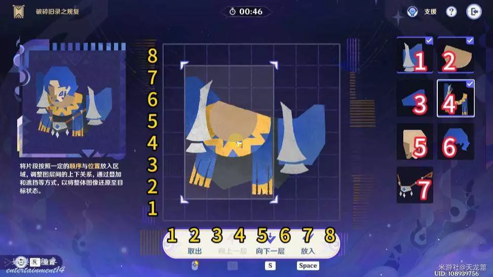 4、6號拼圖放在「5,4」的位置,下移兩層