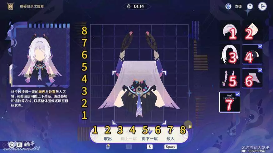 6、3號拼圖放在「1,4」的位置,下移兩層