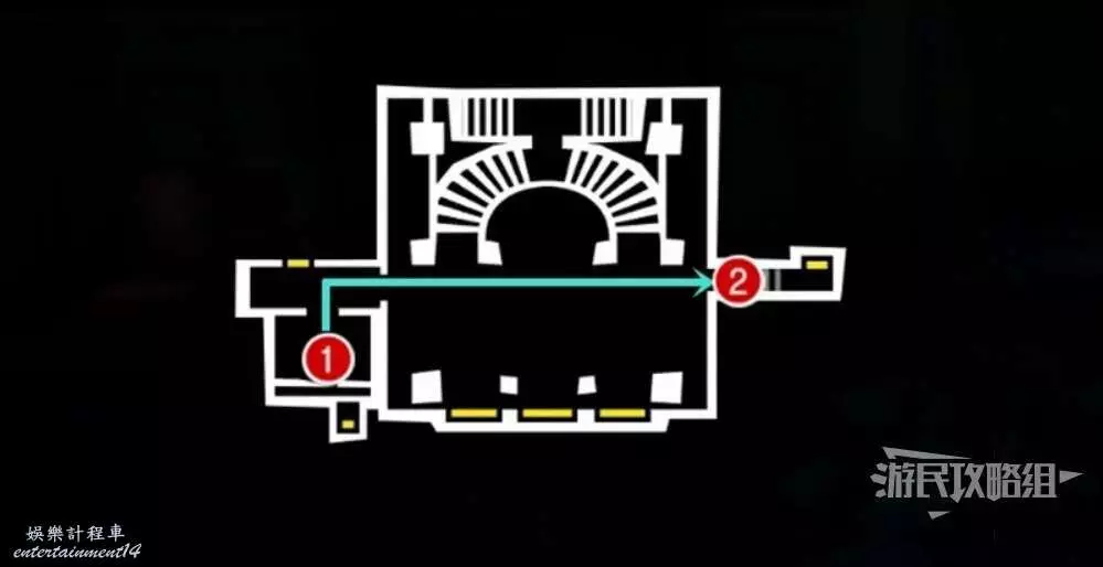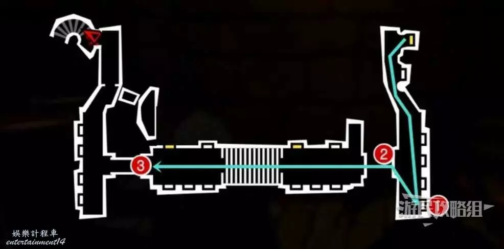 ②使用第三隻眼功能,查看房間內的提示。啟動兩個開關後就可以離開房間了。在桌子上拿到地圖,穿過走廊前往中央大廳