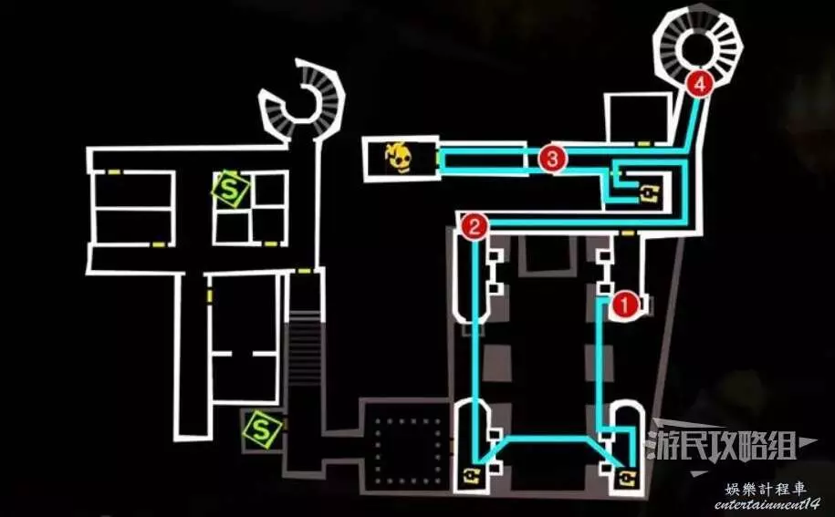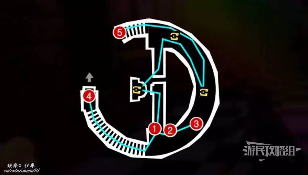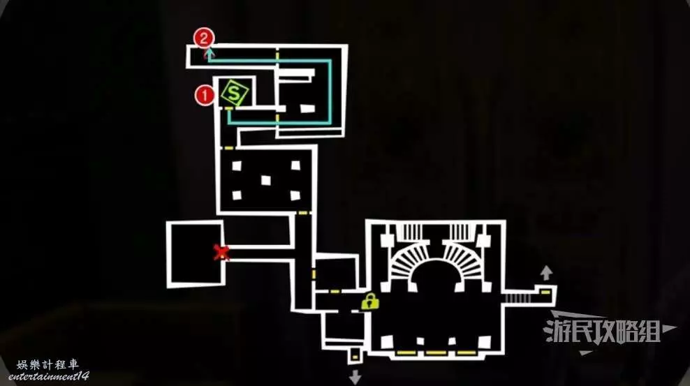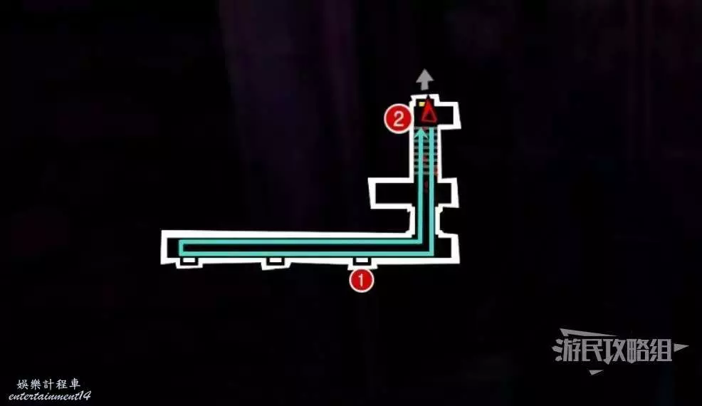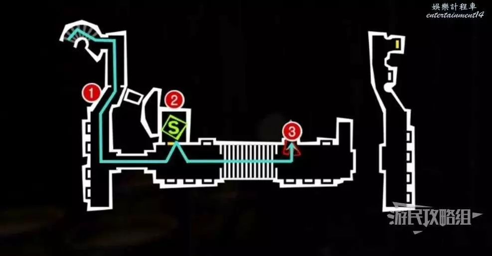 ③進入隔壁房間,打開寶箱後進入北側房間,找到安全屋,然後沿著樓梯往上走