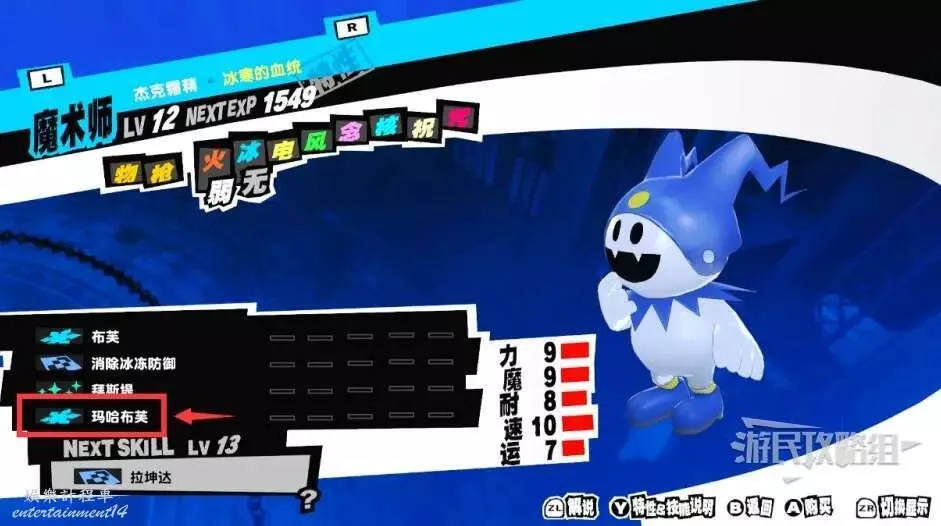 在宮殿內捕捉傑克霜精,將其提升至12級就可以學會技能「瑪哈布芙」。