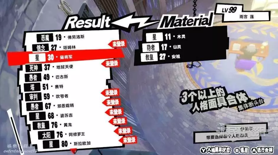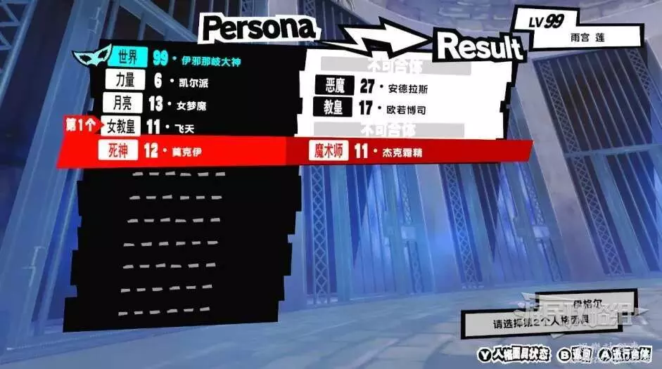 步驟2:【女皇】訶梨帝母+【死神】畢舍遮+【戀愛】皮克希=【愚者】巴古斯。使用集體斷頭台進行合成,合成後繼承技能「薩瑪利卡姆」即可。