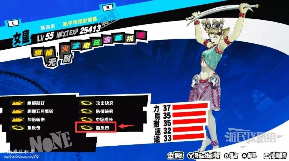 步驟1:將荼吉尼升到52級,學會「超反擊」。這個面具可以在後期抓到。