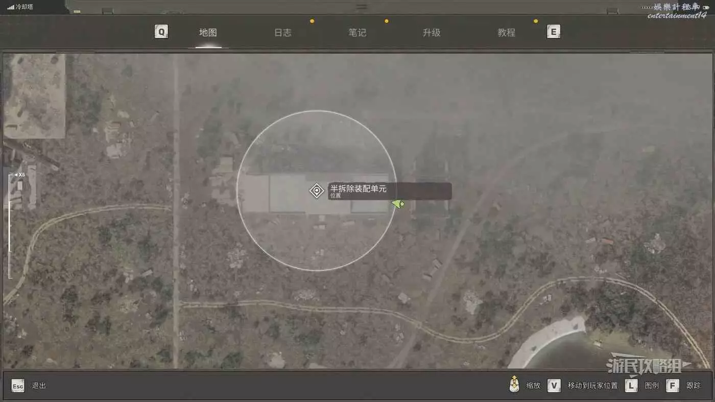 “護胸甲”外骨骼位於冷卻塔區域中的半拆除裝配單元中。參考下圖綠標位置,從東側入口進入。