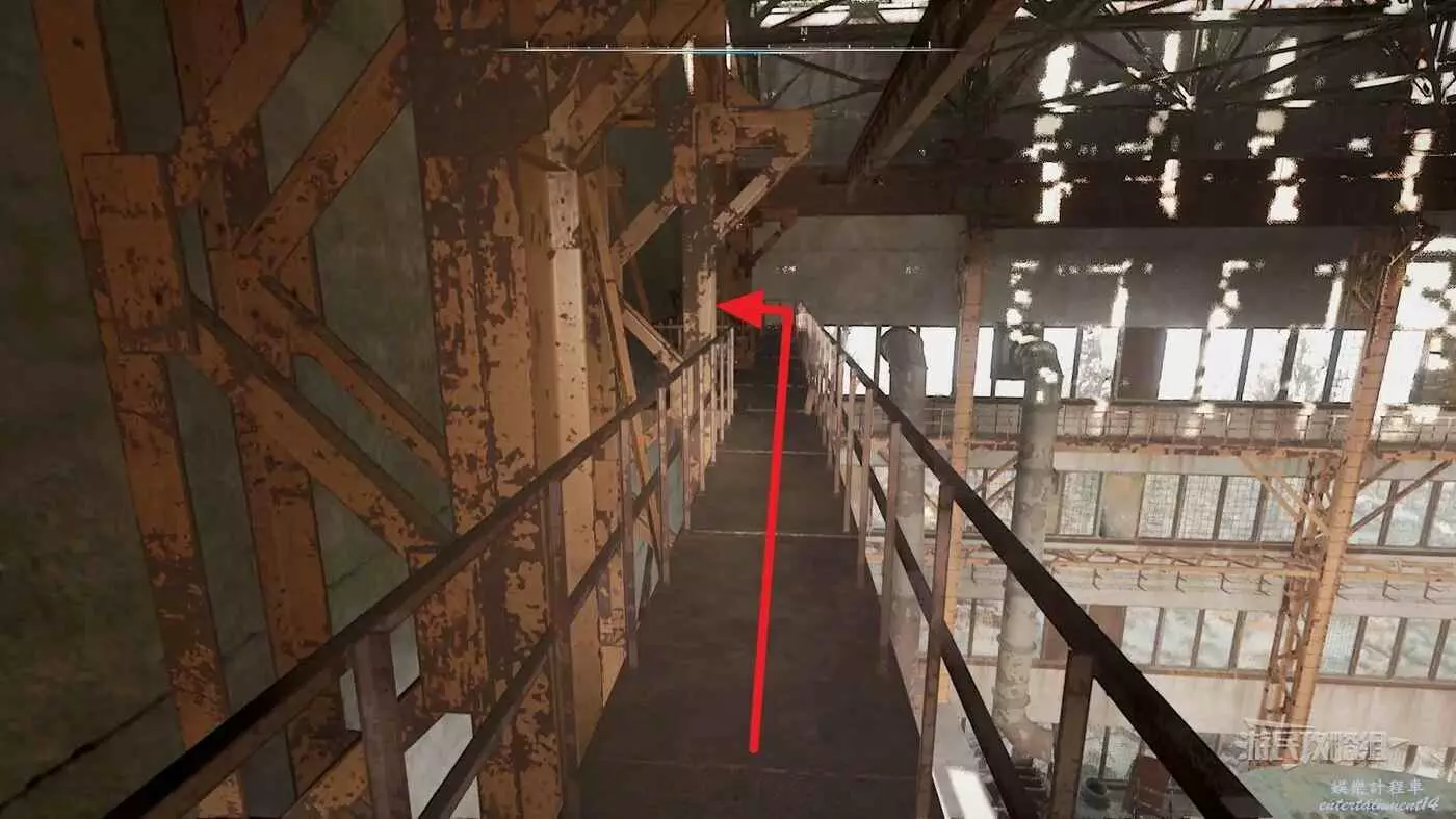 前方需要一直沿著屋頂的管道走到盡頭,途中會遇到電子特異點,提前拿出螺栓,準備好繃帶和醫藥箱。