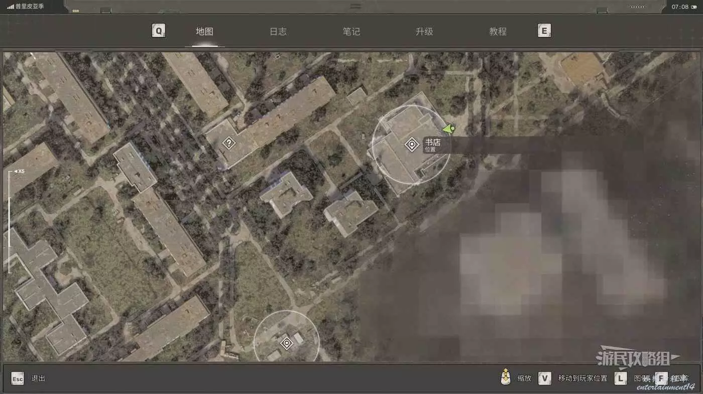 “解放”外骨骼位於普裡皮亞季的書店中。前往書店入口處,參考下圖綠標位置。