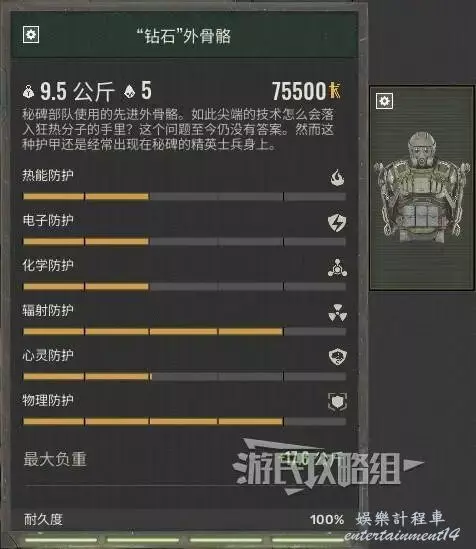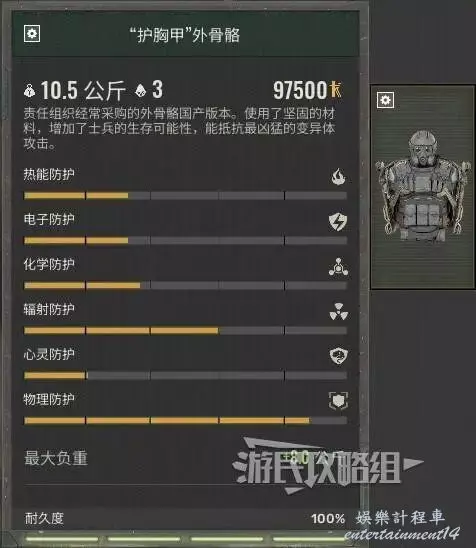 需要注意:外骨骼大部分都需要達到主線劇情後期地圖普裡皮亞季才能拿到(主線任務【分界線】),但前期也可以通過走紅森林-木星市場的蹺課路線提前進入。