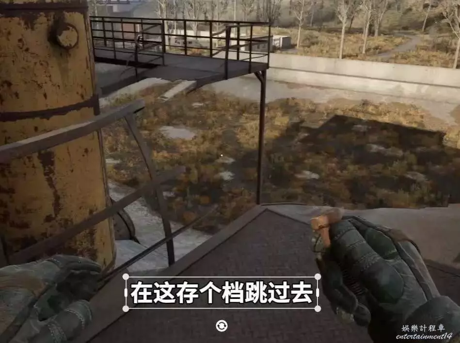 (地圖最西側的孔雀石區域的孔雀石營地,從西側水塔建築爬梯子,走管道到平台處下跳到回廊走到盡頭有個異常點,穿過後是個斷掉的缺口,跳過去就是)
