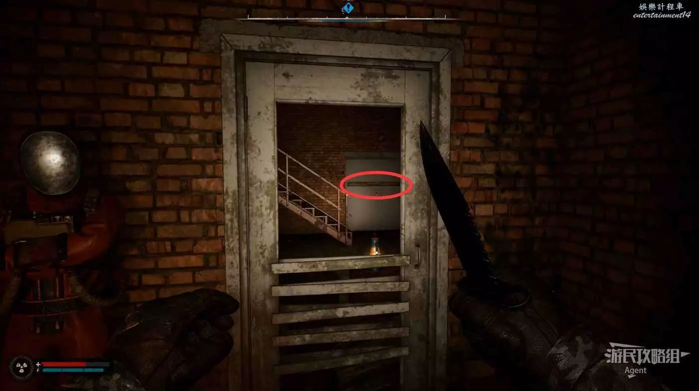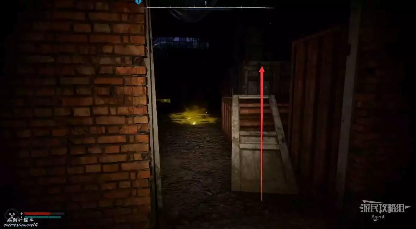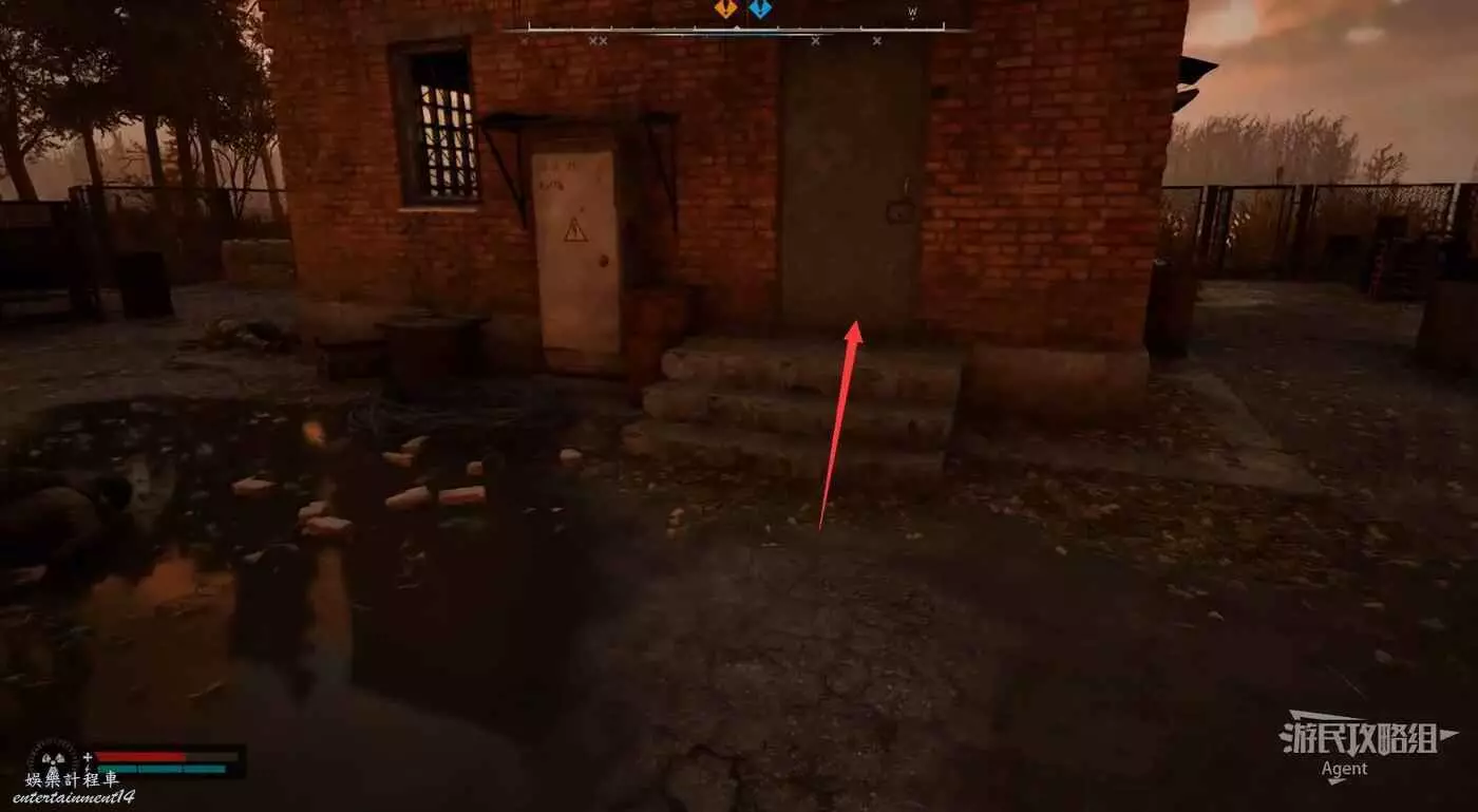 和特拉丘克對話後,注意看房子裡面,走廊上去有保險箱可以搜刮,先把門閂射掉,然後繞到另一側進去。