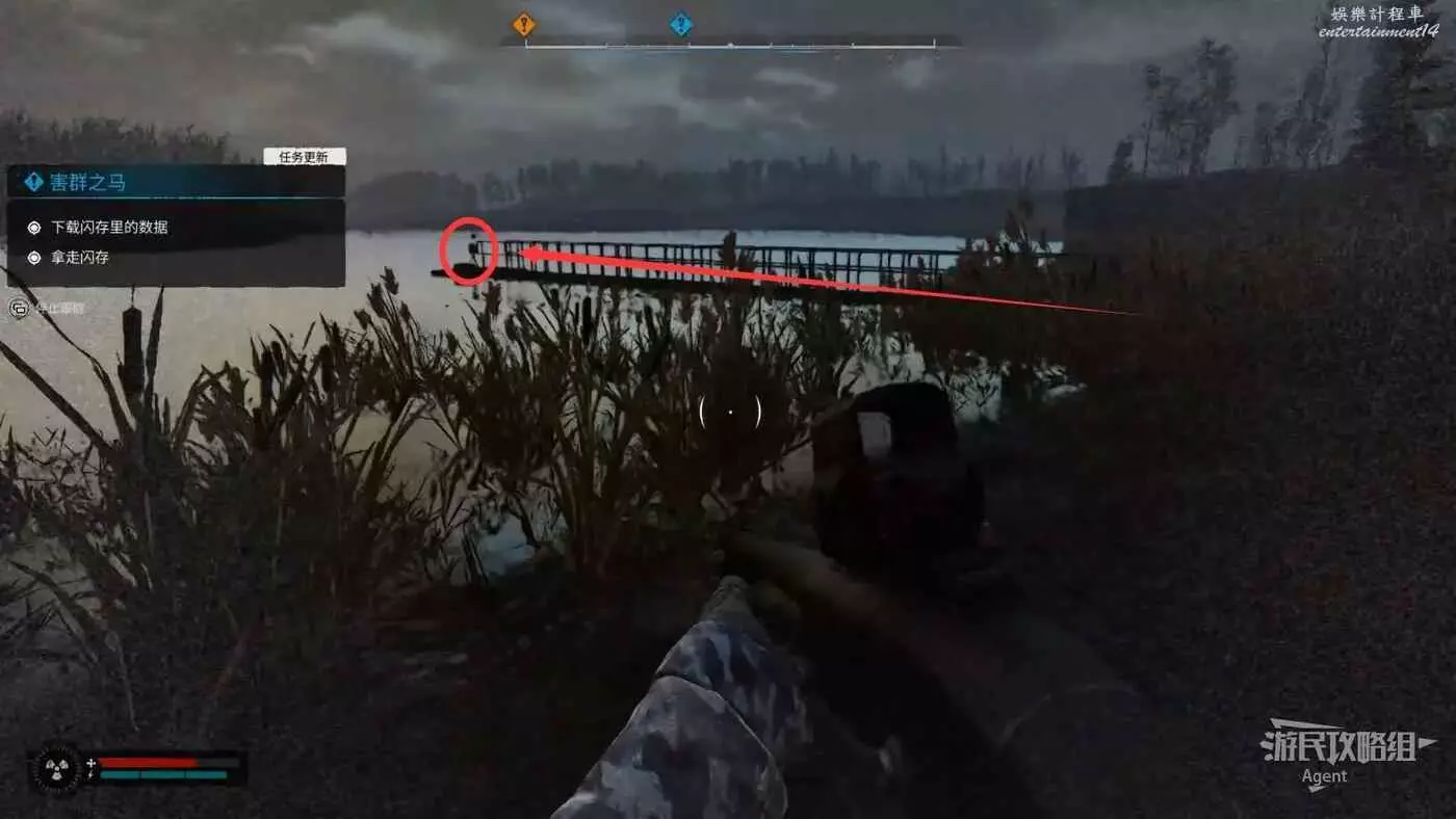 到排水區找到左撇子的隊伍,進屋消滅僵屍,然後搜刮左撇子的屍體得到快閃記憶體。