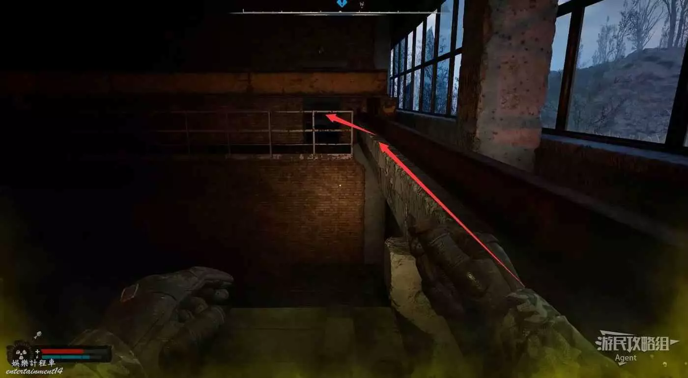 搜刮剛才說的保險箱後,從這裡跳上樓。