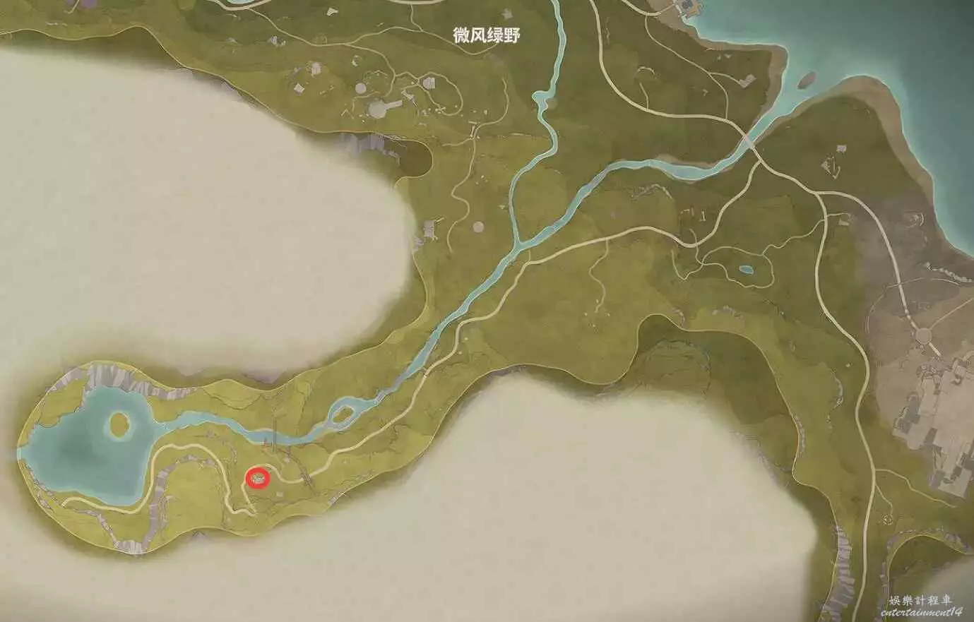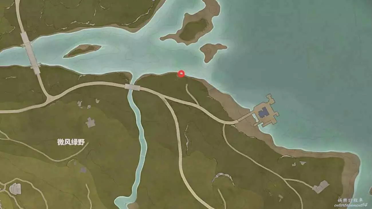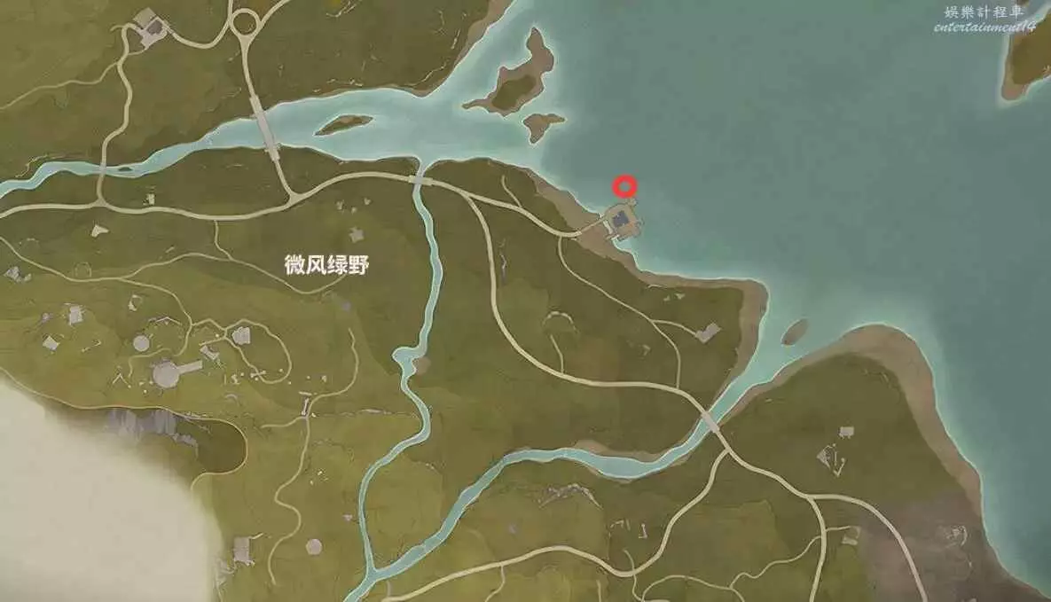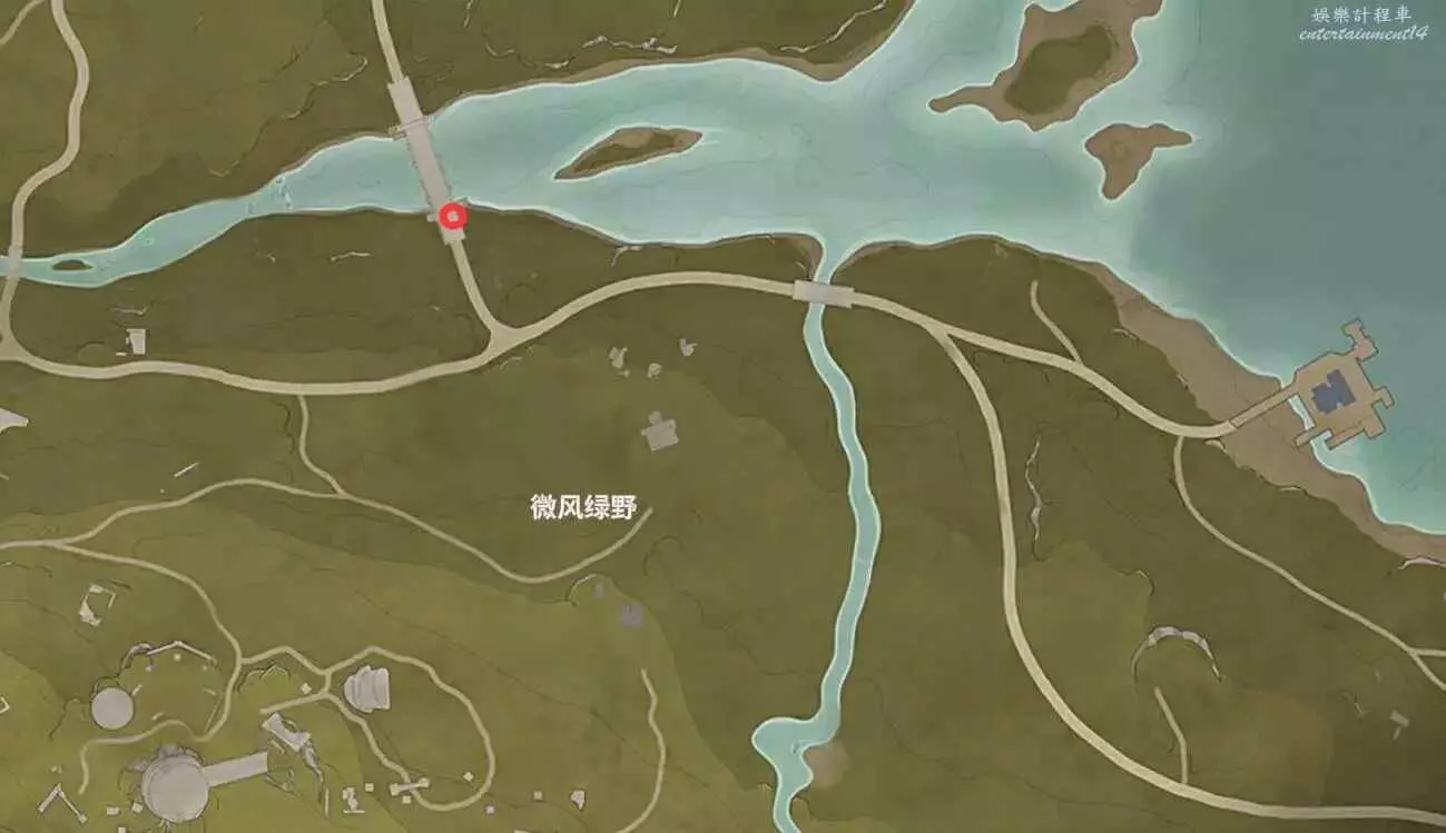 位置如下,寶箱在小山洞裡,能開出設計圖。
