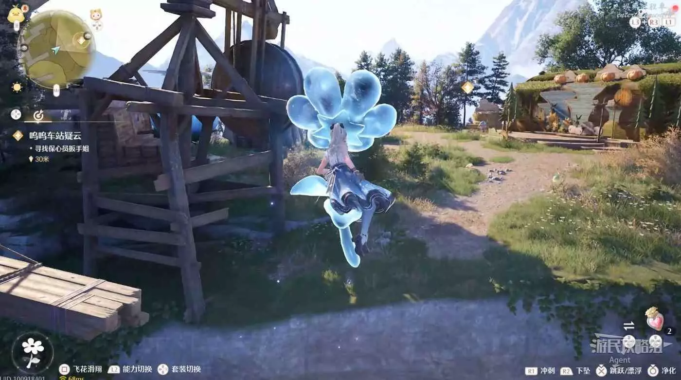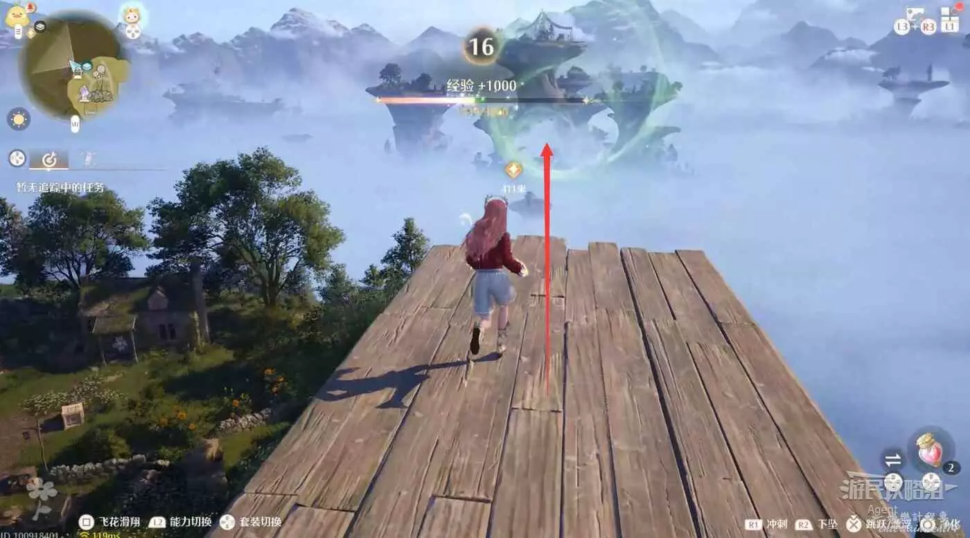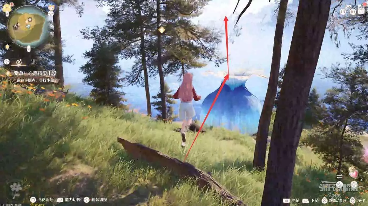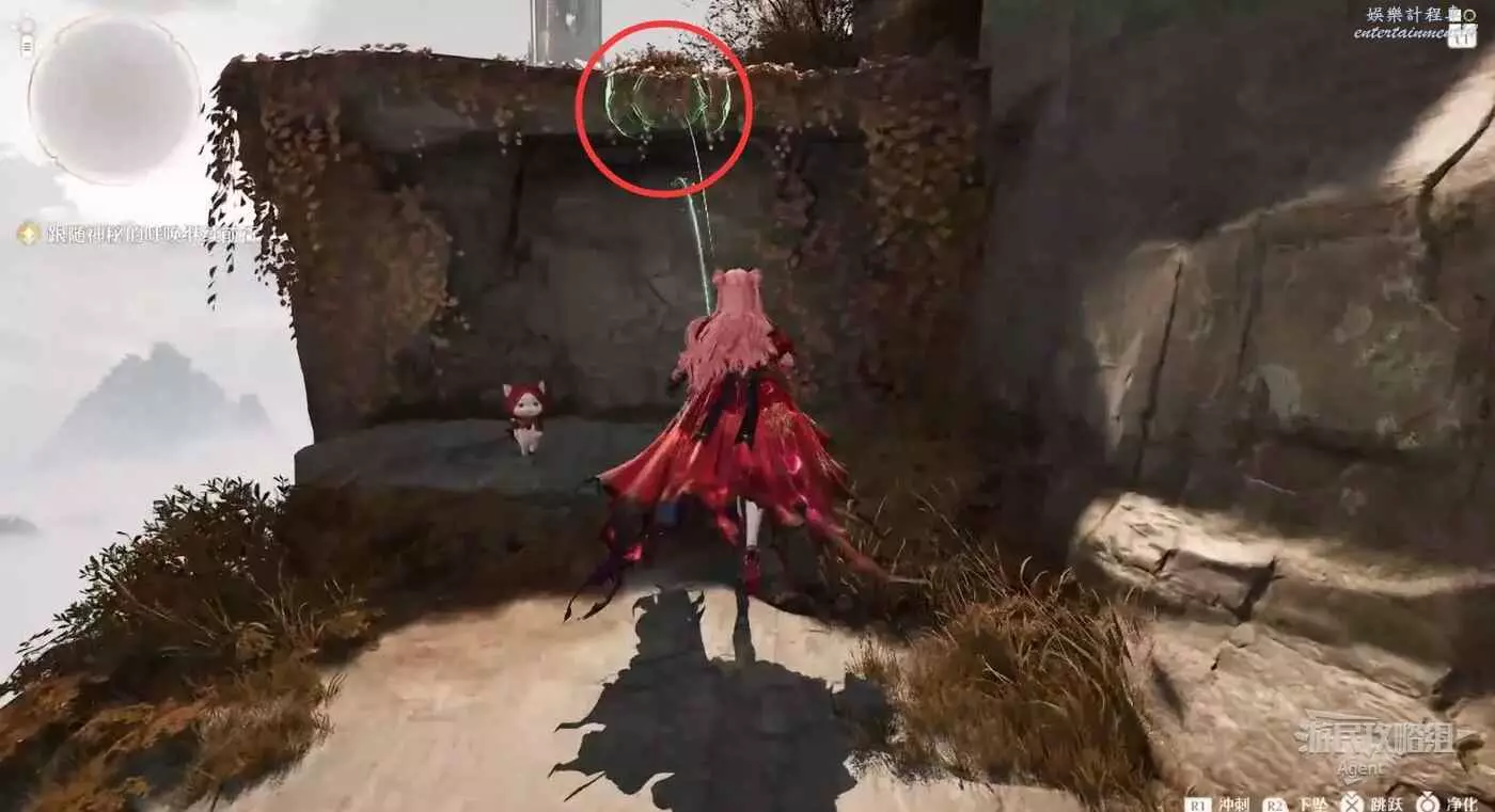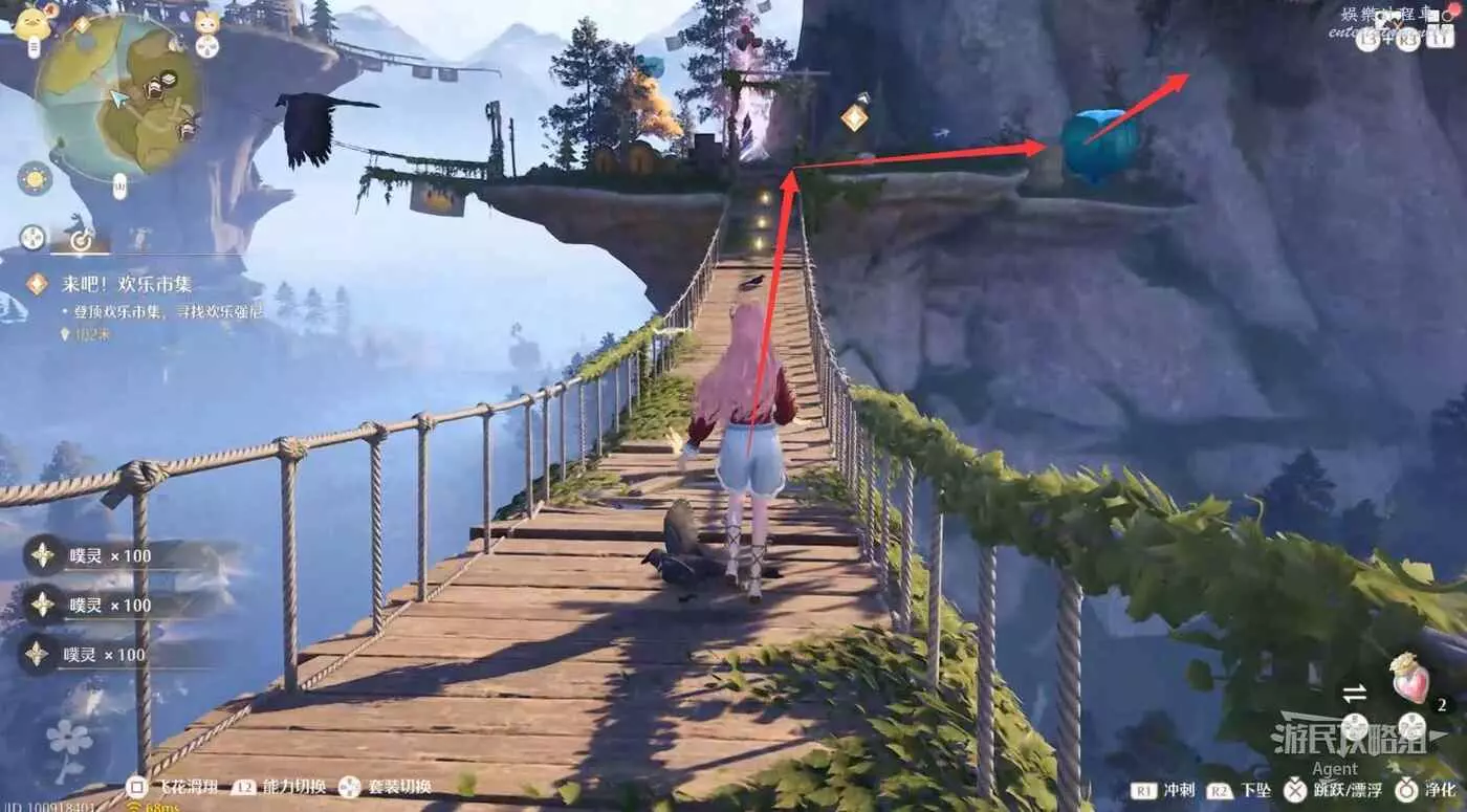 利用風柱,使用滑翔能力飛上去找小豆子。