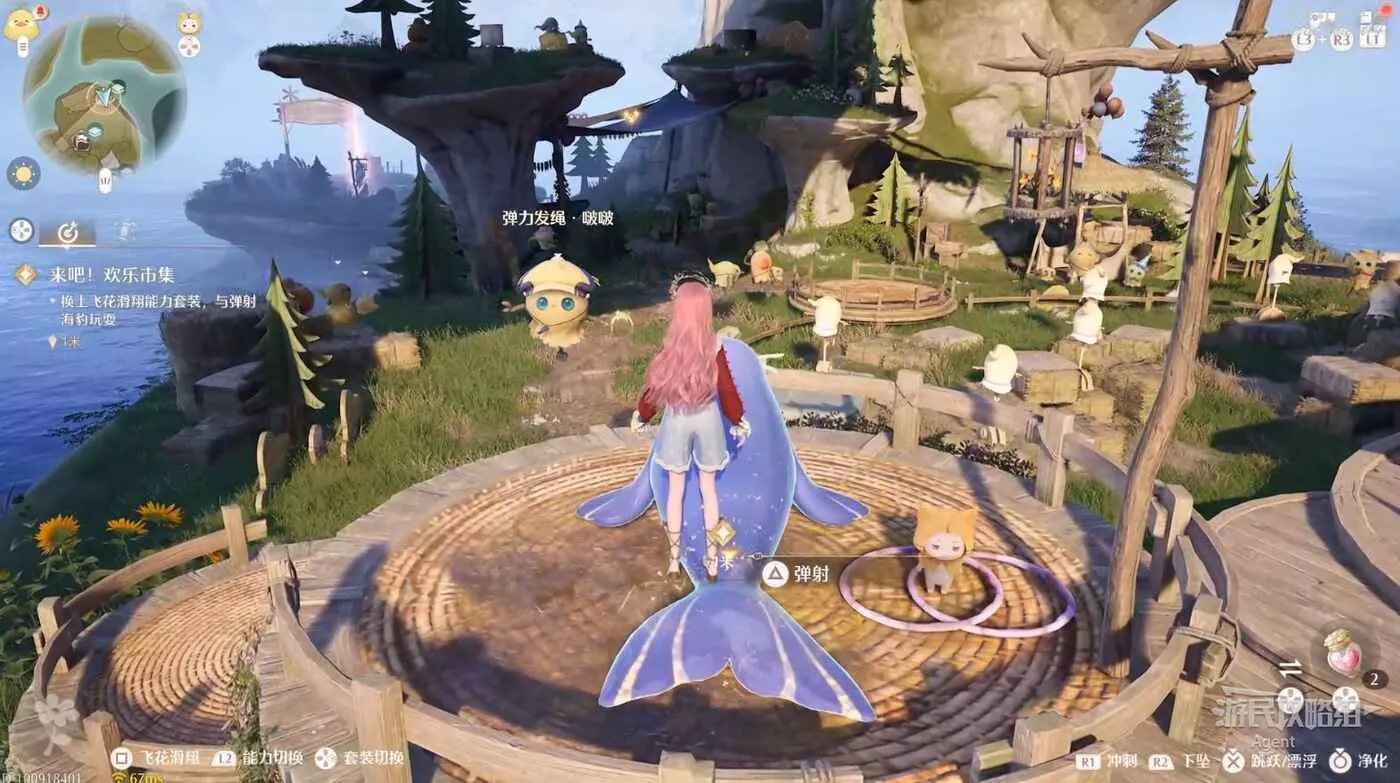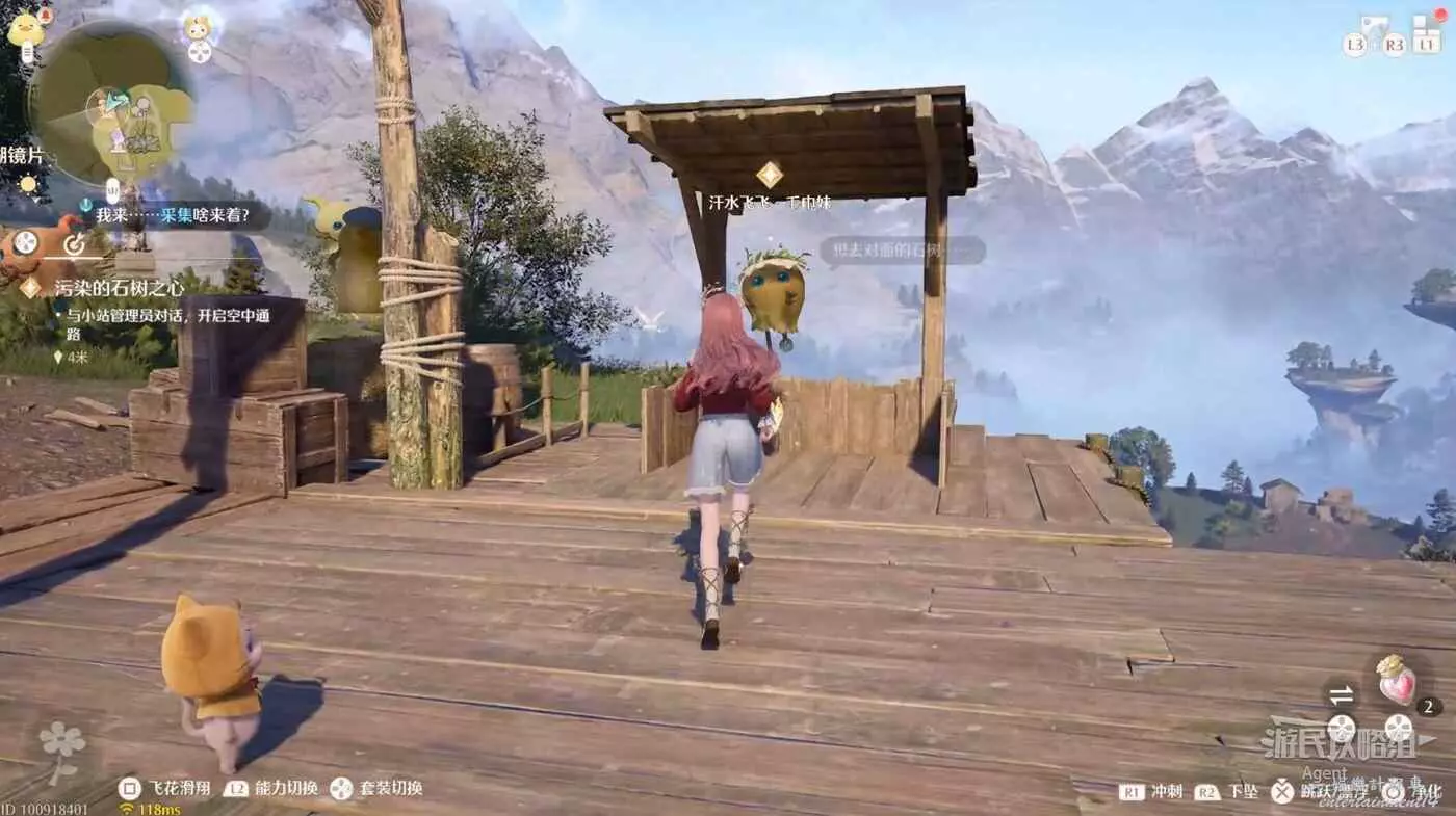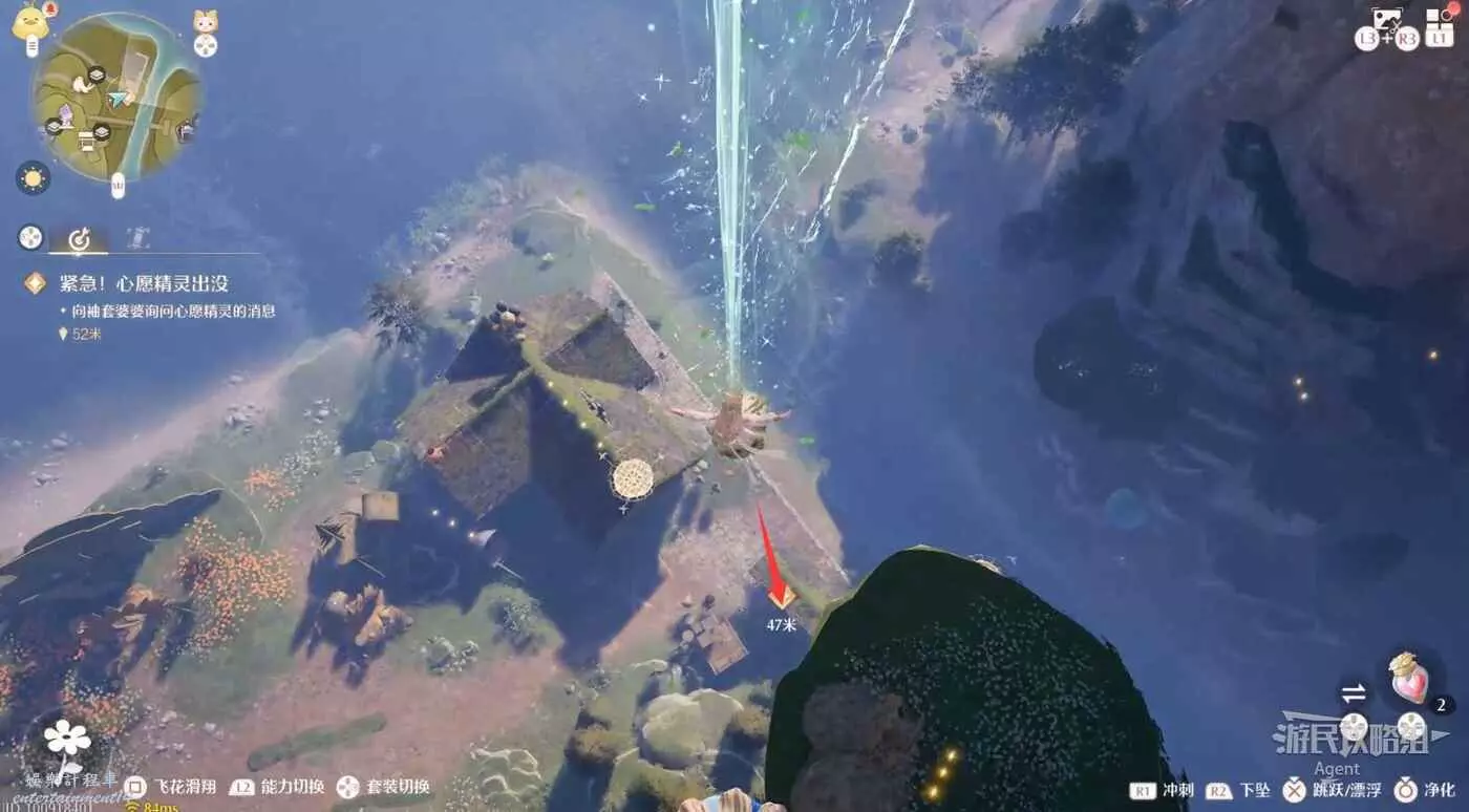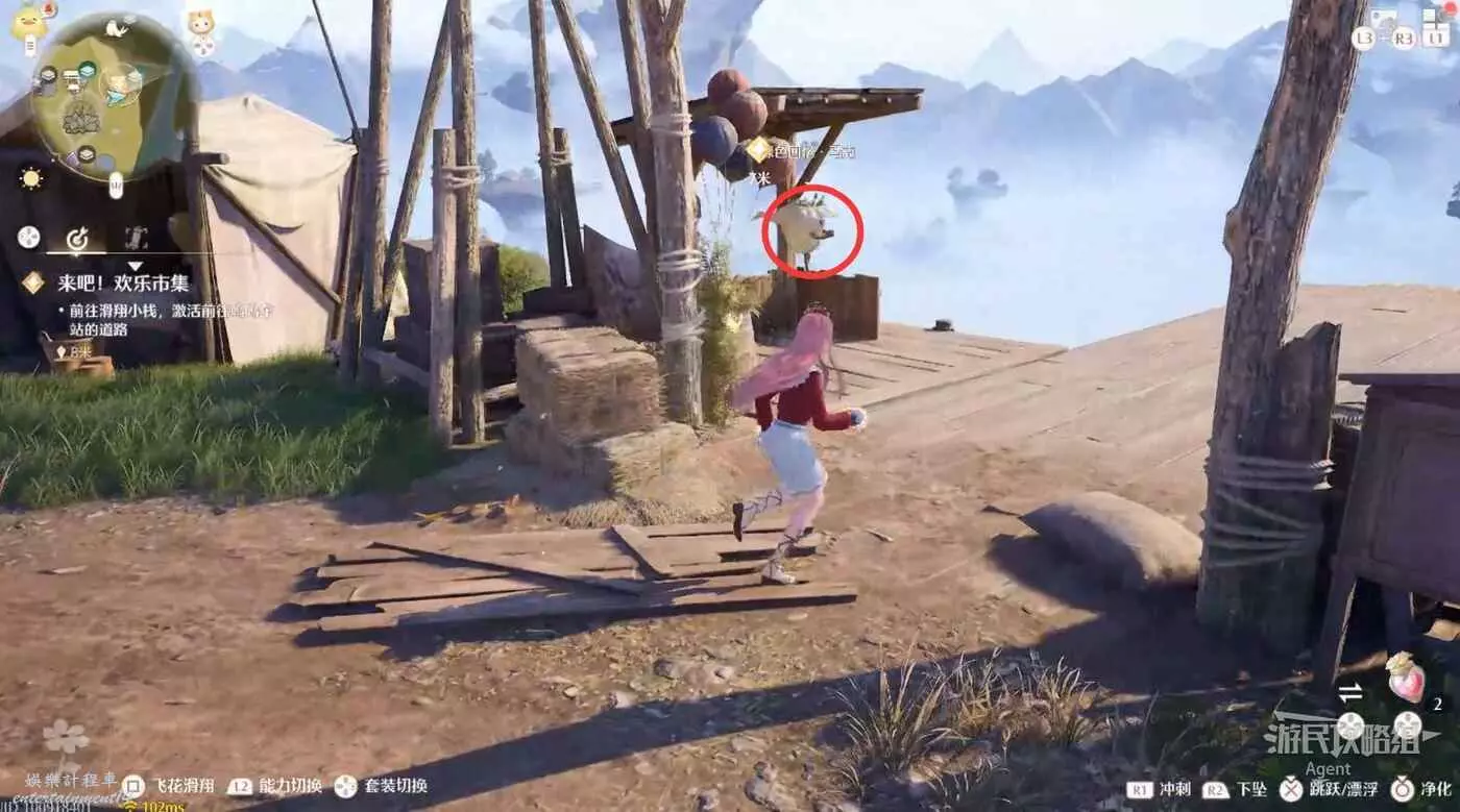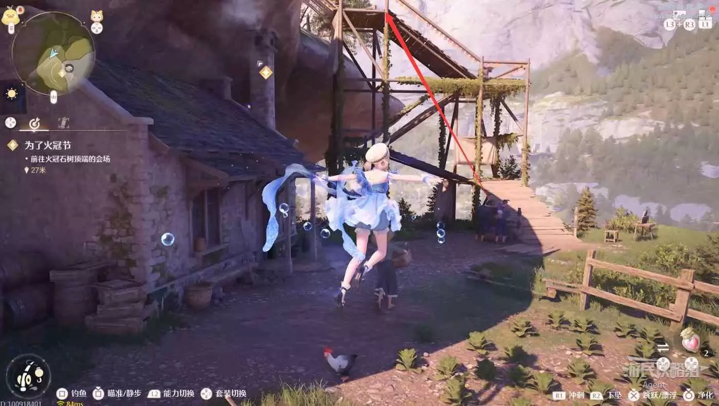 利用風柱,使用滑翔能力飛上去找小豆子。