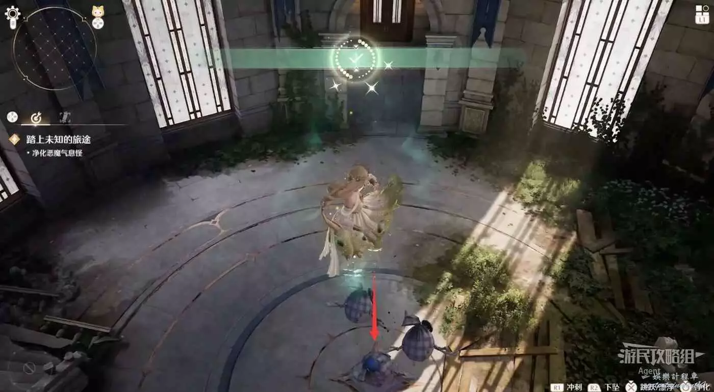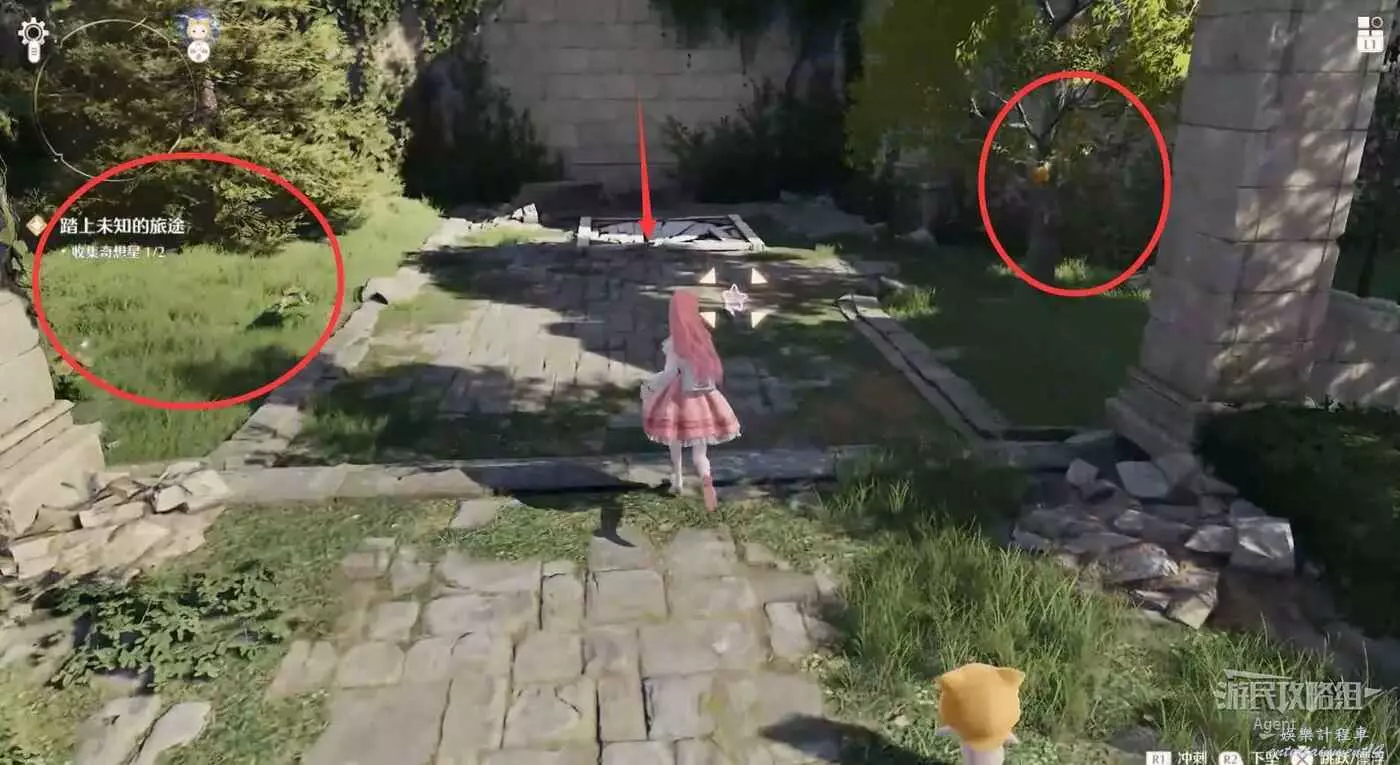 注意四個小風車,按照石樹、太陽、黃花、白羊的順序,射擊這四個小風車,就會觸發劇情。
