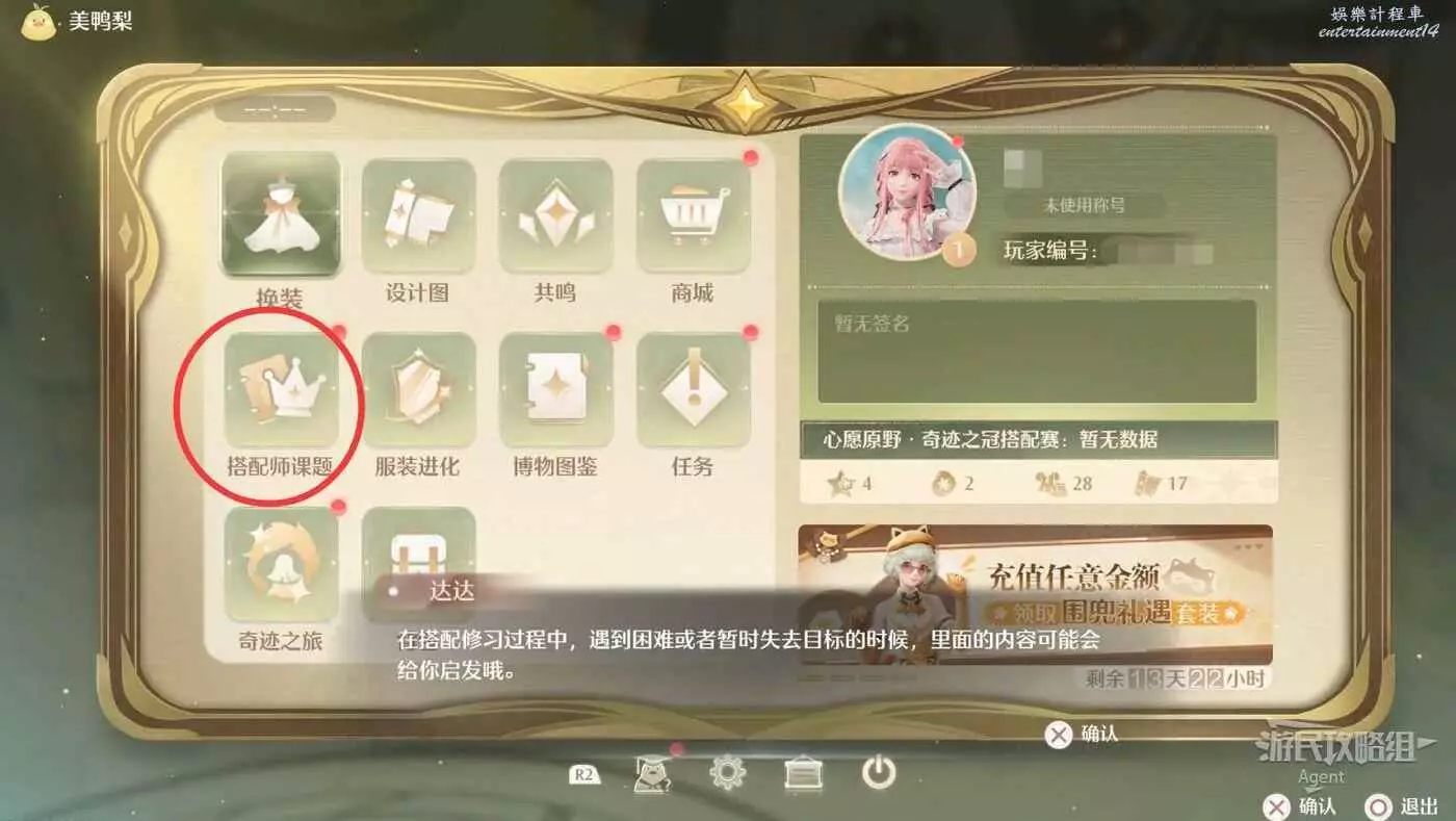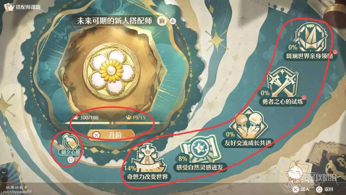在搭配師課題裡,可以查看很多小目標,達成各種目標積累分數,可以升級搭配師的等級。有時要推進主線任務,就必須先升級搭配師的等級。