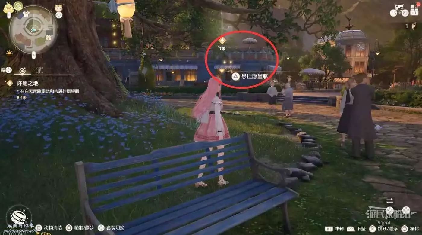 升級到搭配師新秀(第二級)後,到願望神雕像觸發劇情。時間沒到的話,就用“美鴨梨快跑”功能快速推進時間。