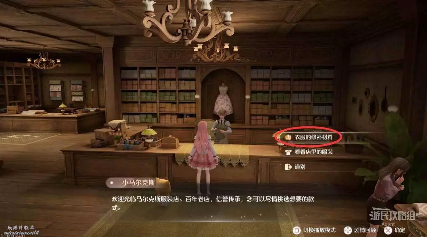 到服裝店找小瑪律克斯,對話選擇“衣服的修補材料”。