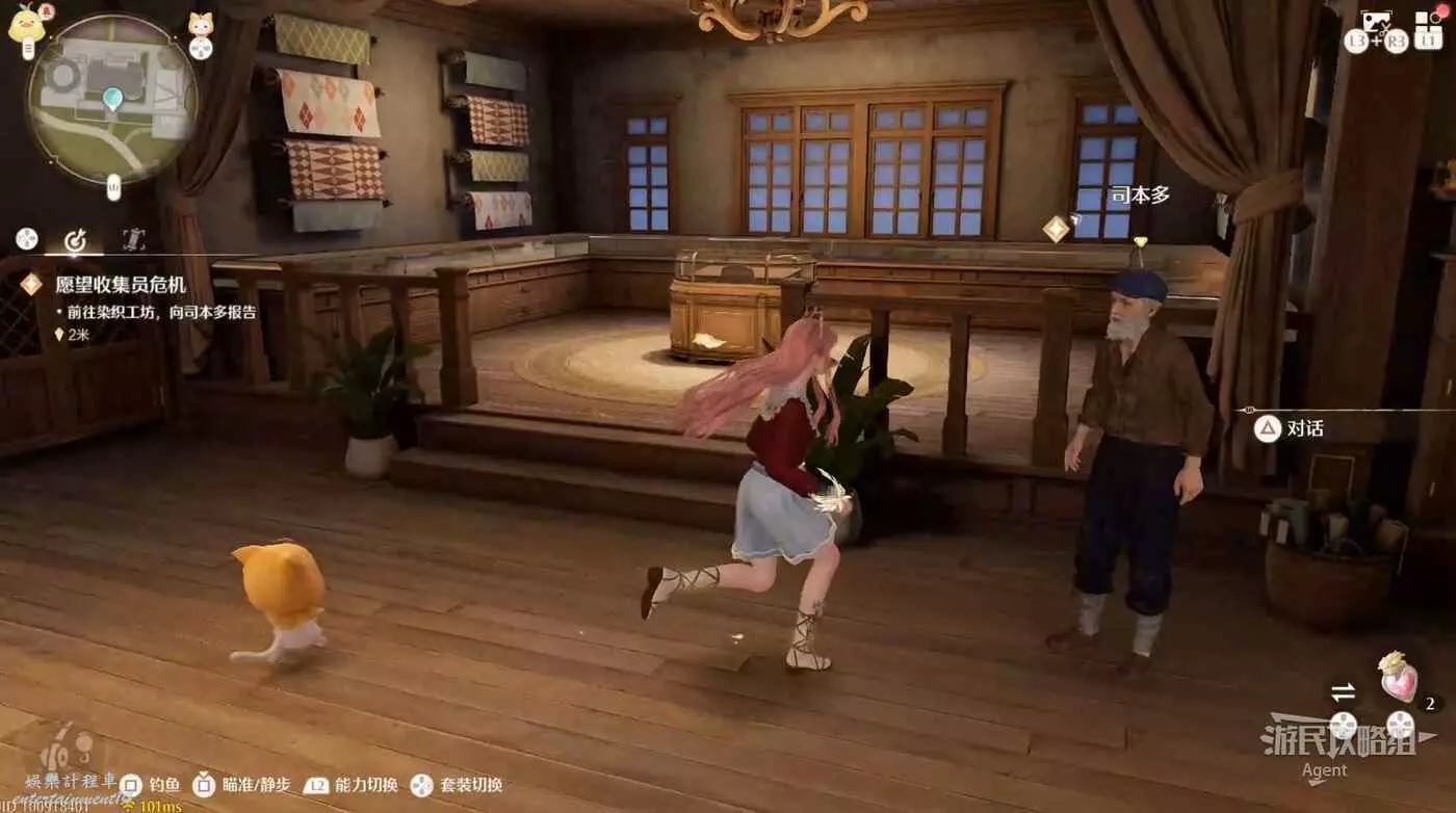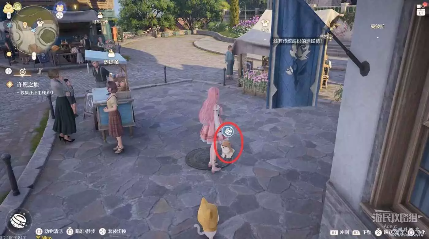 在附近找只狗狗進行清潔,得到汪汪毛線。